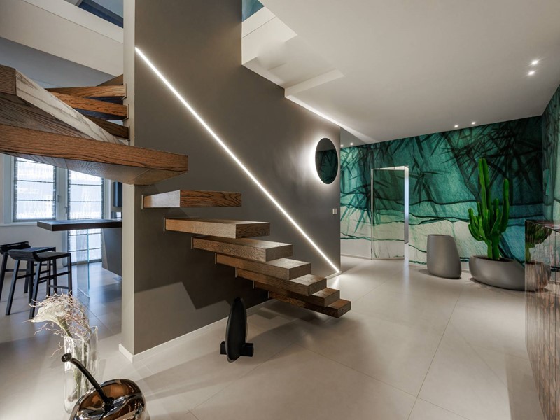Aria condizionata canalizzata in tutti gli ambienti, riscaldamento centralizzato a pavimento.