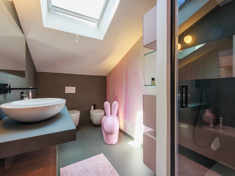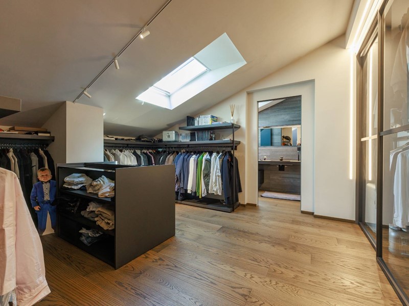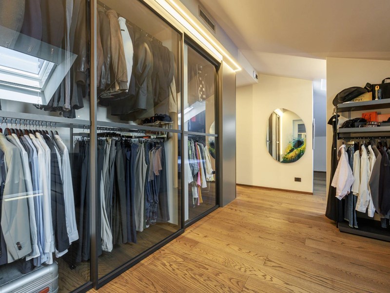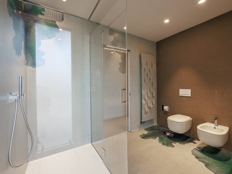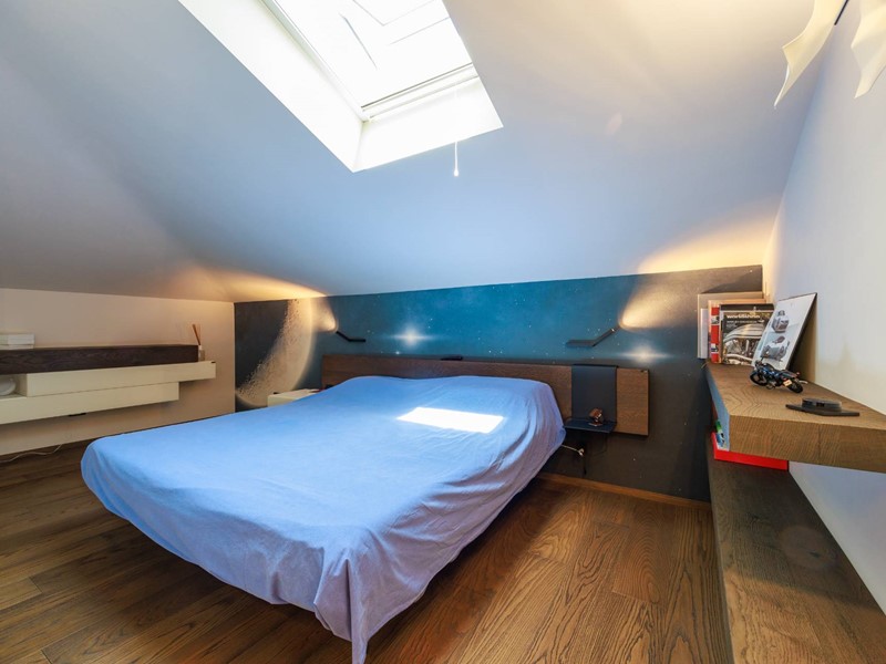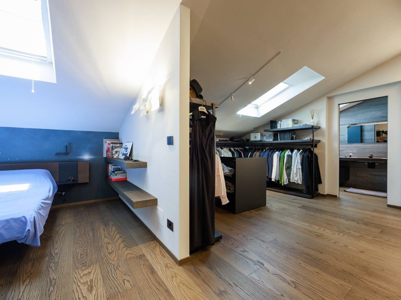 Al quarto piano camera da letto matrimoniale, studio, doppi servizi entrambi finestrati di cui uno con la sauna e uno con bagno turco.