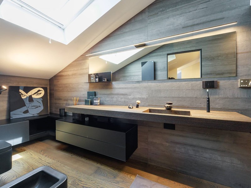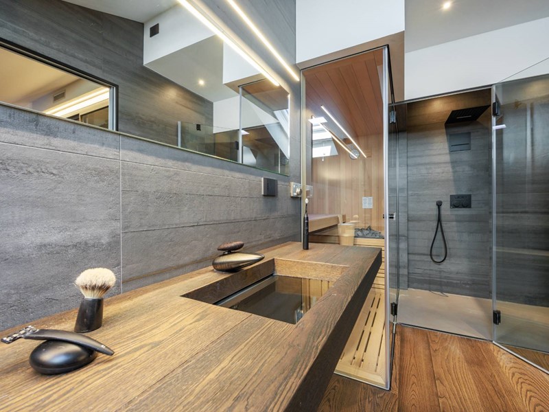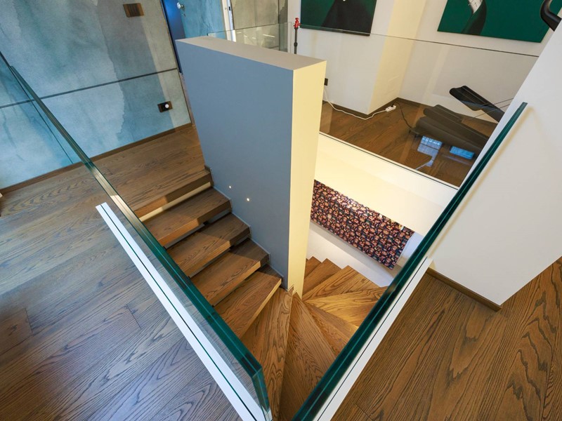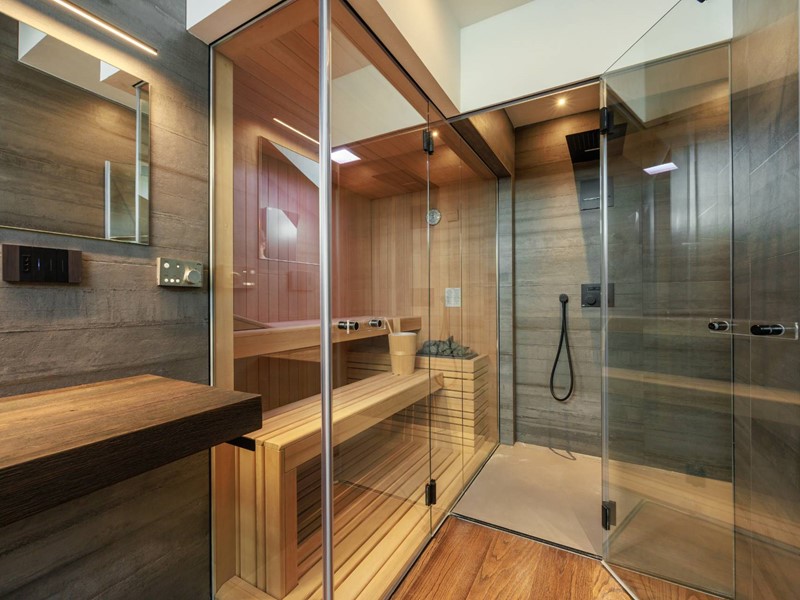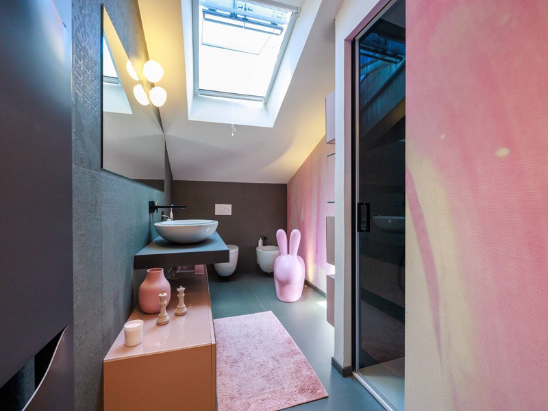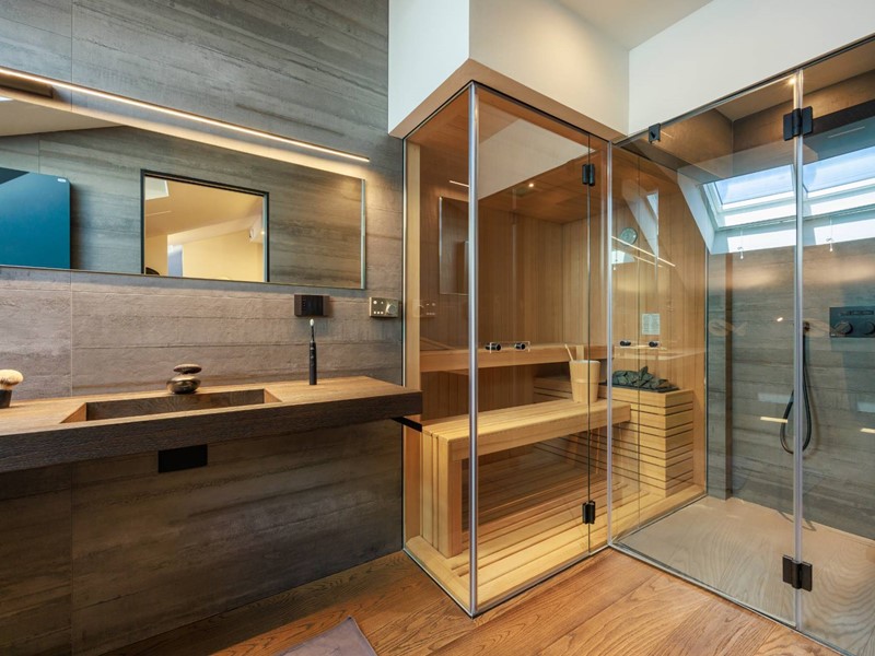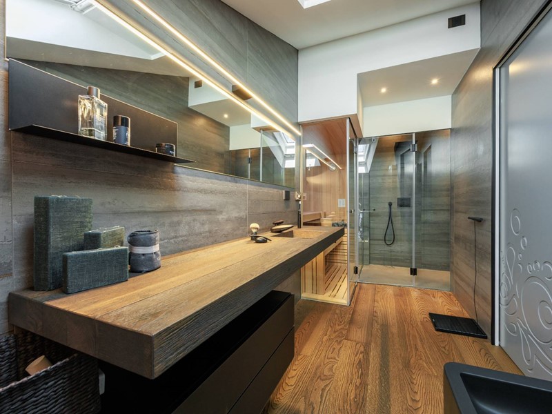 Al quarto piano camera da letto matrimoniale, studio, doppi servizi entrambi finestrati di cui uno con la sauna e uno con bagno turco.