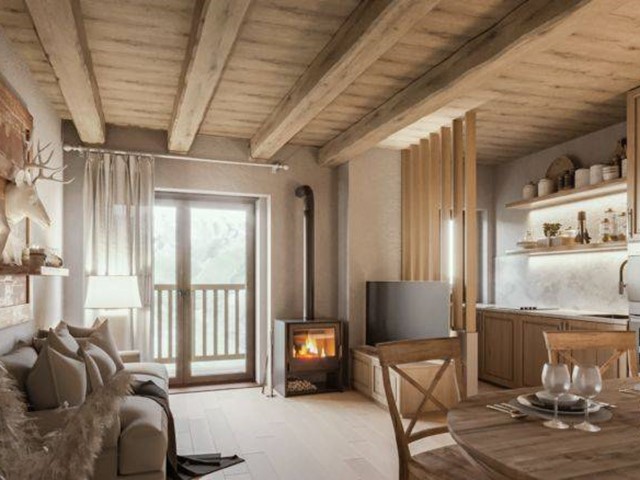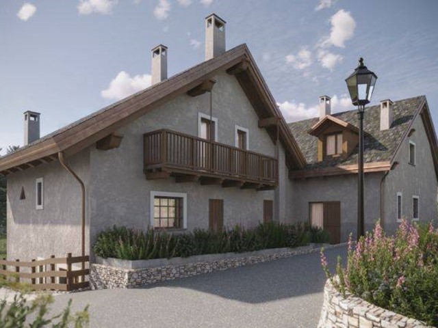 ALLOGGIO 4: un trilocale al piano primo di CASA B, impreziosito da soffitti in legno a vista riproponendo il fascino della struttura tradizionale il legno tipiche delle grange. Lampia zona giorno con cucina a vista si apre su uno dei due ampi balconi ideali di una vista impèareggiabile sulla montagna. Completano lalloggio due camere da letto, servizio e un comodo ripostiglio.