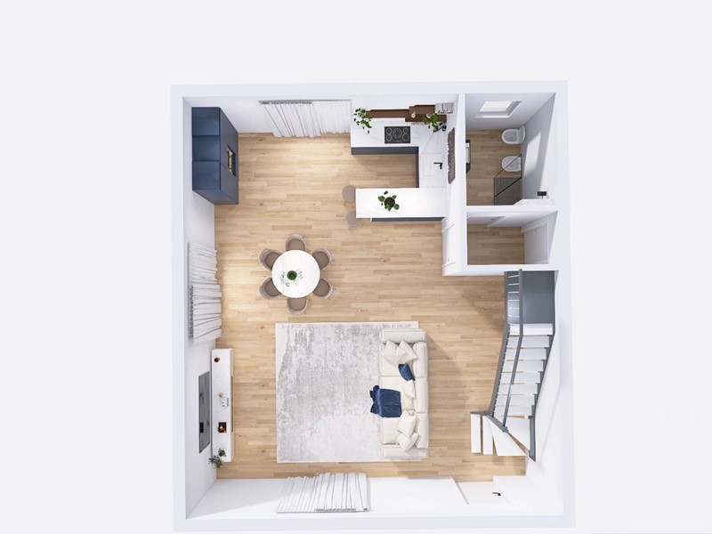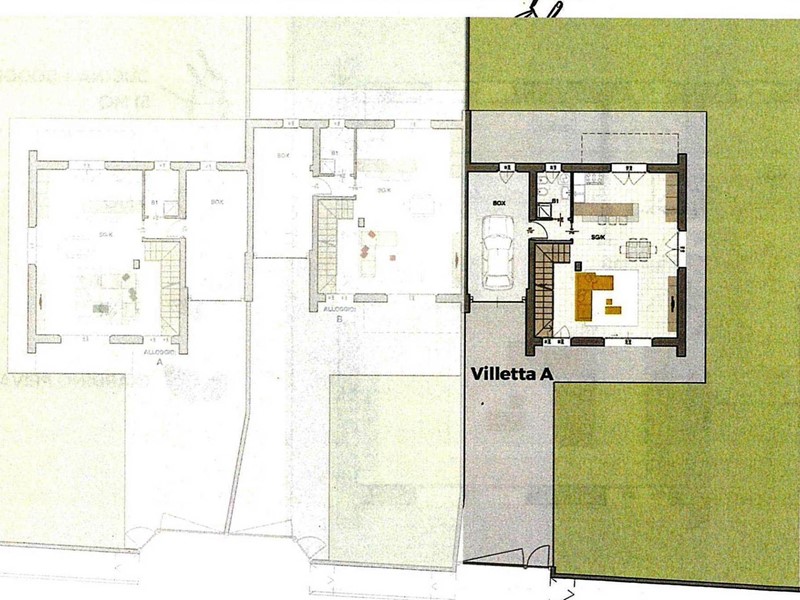 Al piano terra, troverete la zona giorno di mq 55 composta da un soggiorno accogliente, e lo spazio per una cucina moderna e funzionale, il bagno di servizio ed il box auto collegato di circa 19 mq