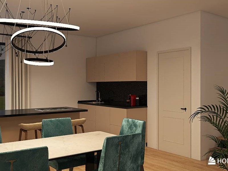 Composta dal piano terra, luminoso e aperto verso lesterno, che accoglie tutte le funzioni classiche in 55 mq, living, cucina, e bagno, al piano terra troviamo anche il box auto di circa 19 mq collegato anche internamente.