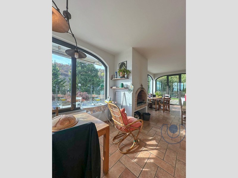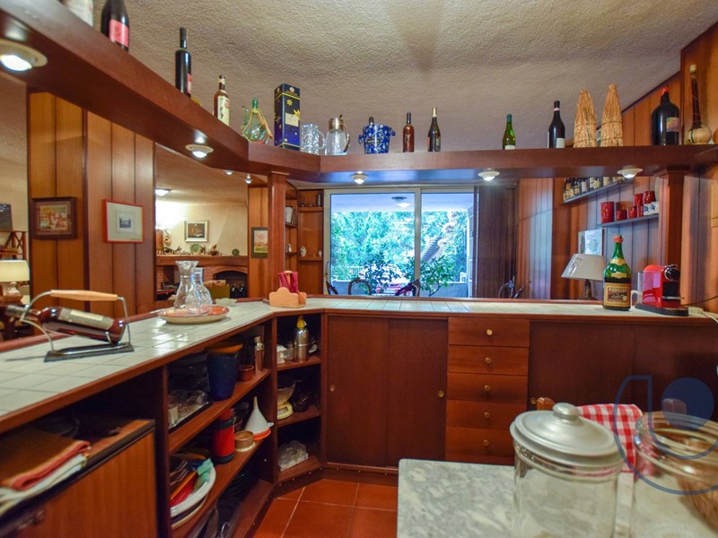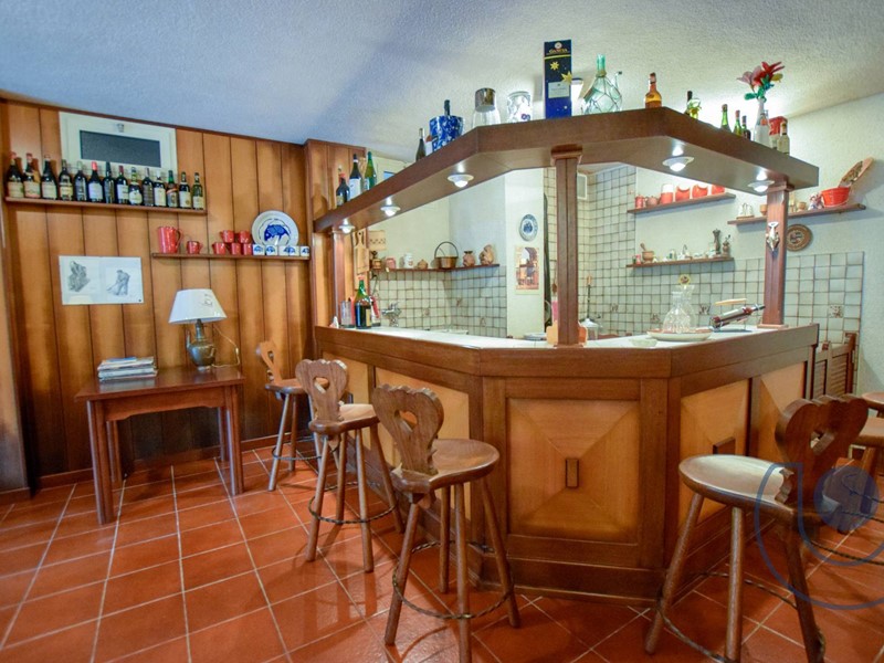 Completa la proprietà un ampia zona taverna con angolo bar sfruttabile 365 giorni all'anno, in quanto posta al piano terreno e correlata di ampie vetrate, un bagno interamente ristrutturato, una camera con cabina, cantina, locale caldaia e box auto.