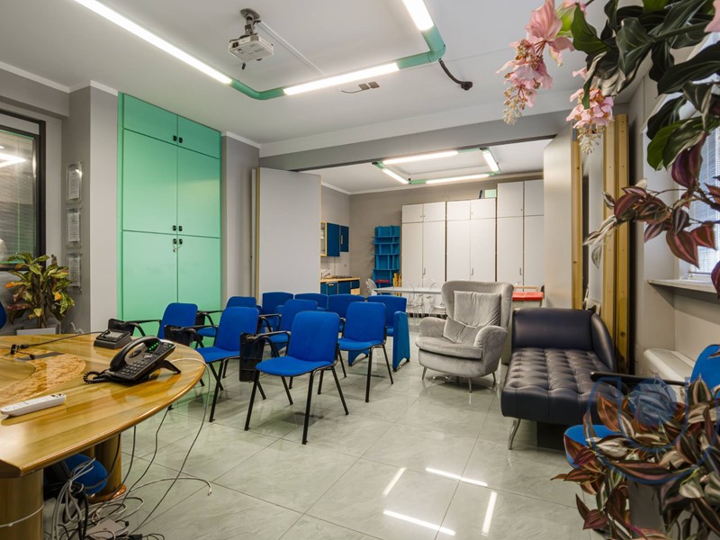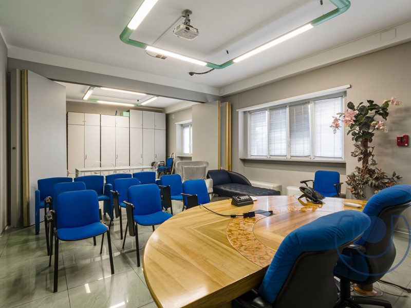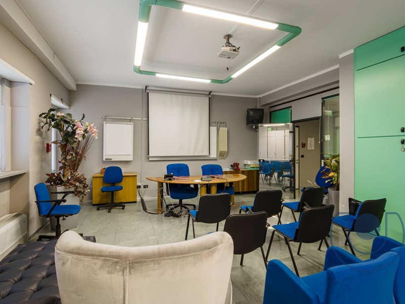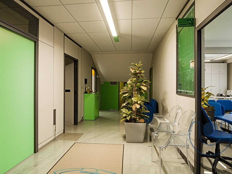 Piano rialzato: prestigioso ufficio di circa 300 mq, composta da ambienti adibiti a centralino, zona ricevimento fornitori e acquisti, oltre a uffici direzionali, sale riunioni, uffici amministrazione, marketing, zona accoglienza e servizi, sale corsi, zona ristoro, zona server, archivi, il tutto collegato direttamente ai locali magazzino e autorimessa.