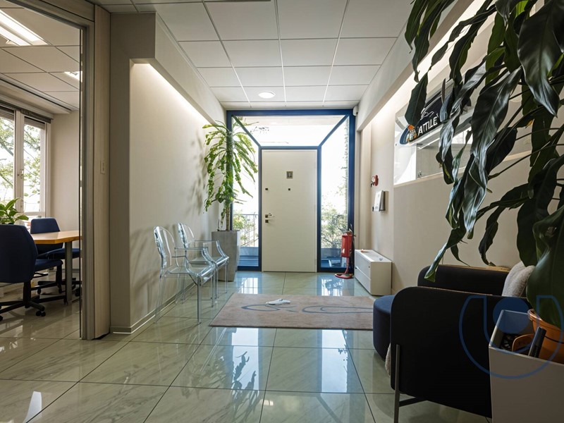 Gli ambienti interni, recentemente ristrutturati con cura, offrono spazi generosi e un layout funzionale. Lascensore collega tutti i piani, dalle aree uffici ai livelli residenziali fino allattico, che beneficia di un accesso diretto tramite ascensore, assicurando comodità e confort anche ai piani più alti. Le parti comuni sono in ottimo stato, valorizzate da materiali di pregio che sottolineano il carattere elegante delledificio.