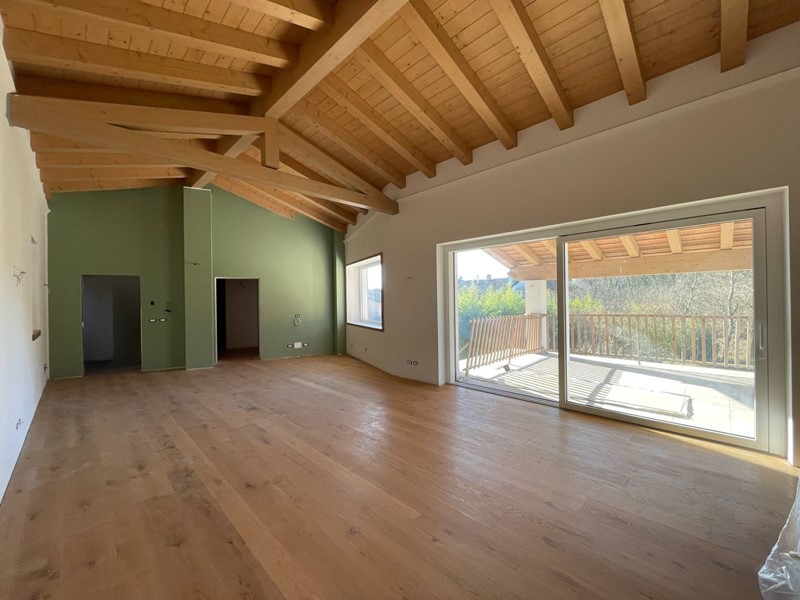 Labitazione principale si sviluppa al primo piano, dove si apre una luminosa zona giorno in open space con cucina a vista, perfettamente integrata con lampia terrazza coperta: un ambiente ideale per pranzi e cene allaperto durante la bella stagione.