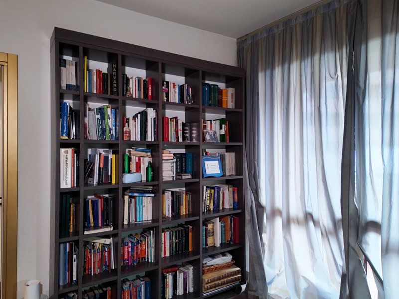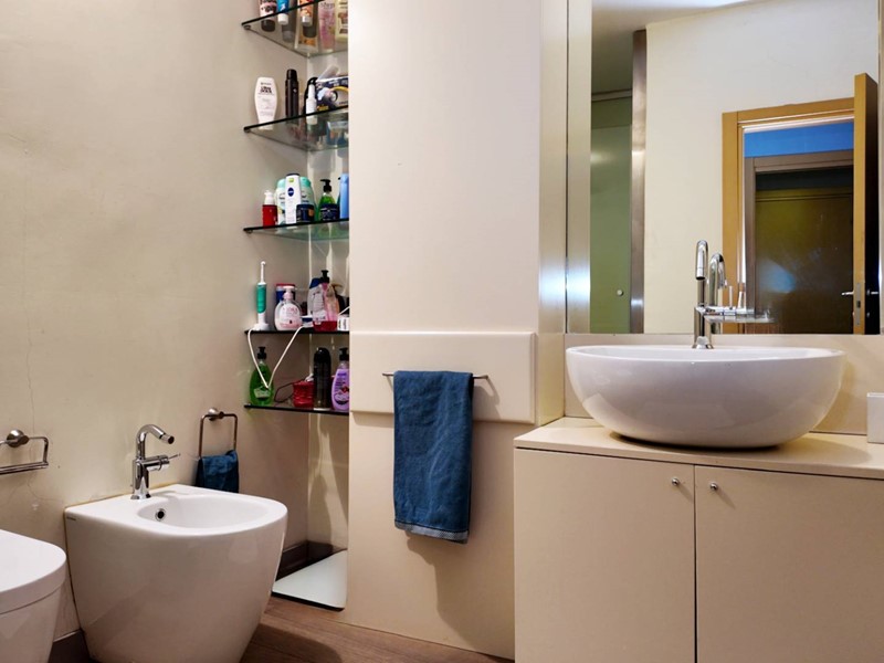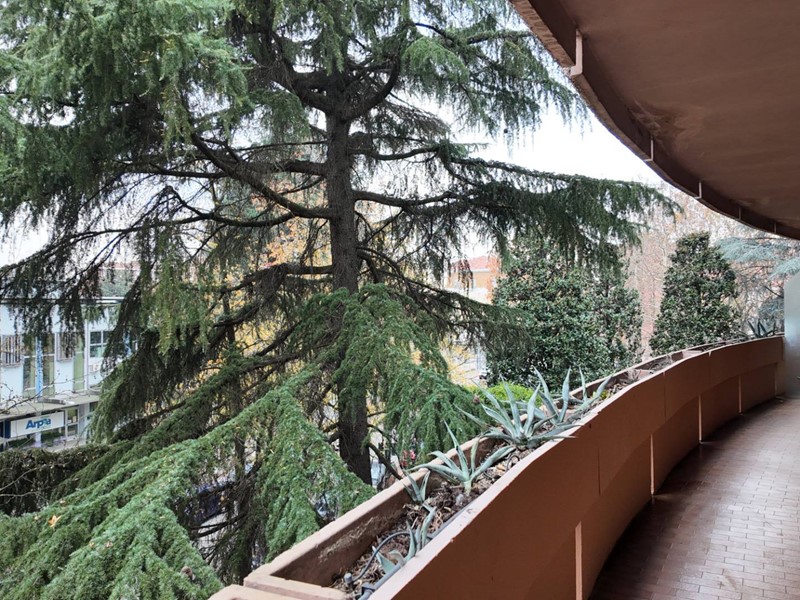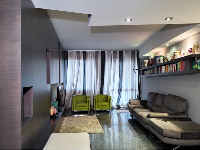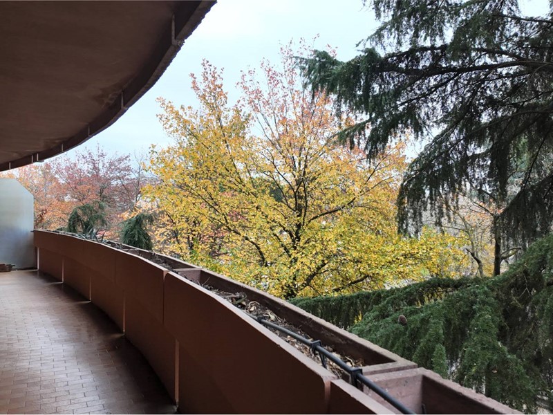 La soluzione si presenta in ottime condizioni e si compone di: ingresso, cucina abitabile, zona pranzo, salotto con uscita su terrazzo, camera matrimoniale con cabina armadio e bagno privato annesso, due camere singole, secondo servizio e ripostiglio. La particolare architettura dell'edificio e le grandi vetrate che si affacciano sul verde, conferiscono agli ambienti grande luminosità ed ampio respiro.