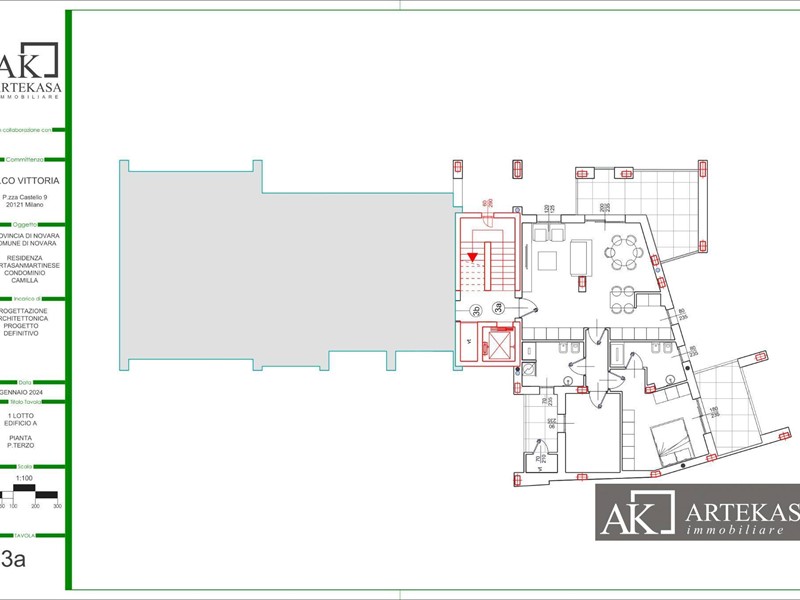 Trilocale in Vendita a Novara, 371'000€, 116 m²