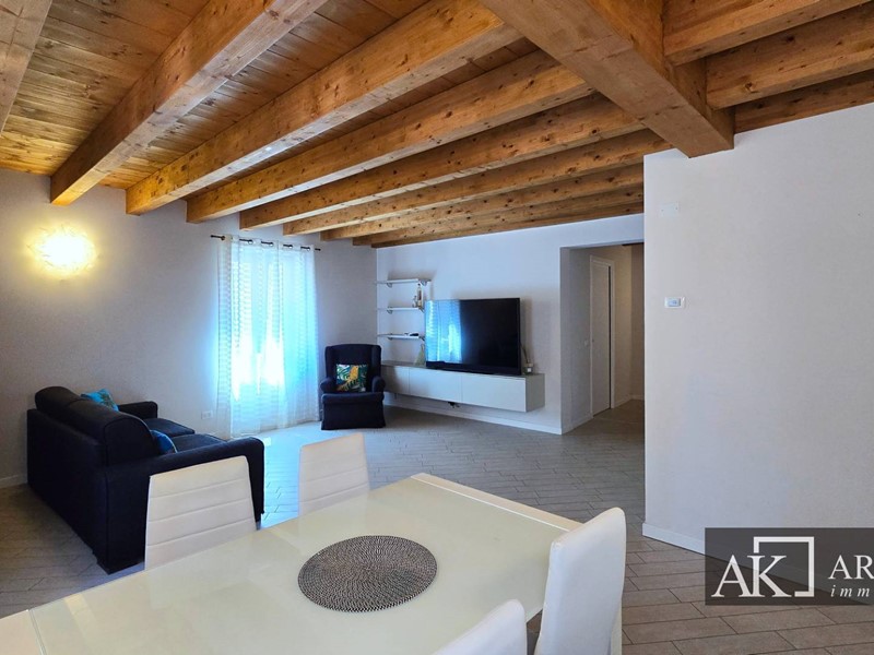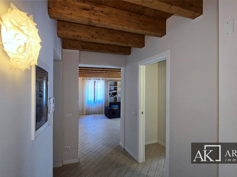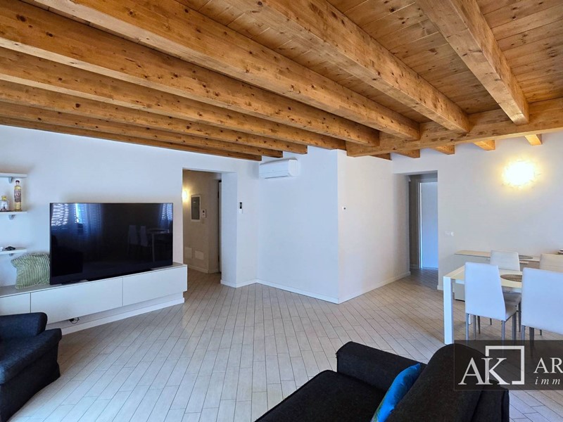 All'interno dell'isola pedonale, in stabile completamente ristrutturato a nuovo nel 2014, bellissimo e luminoso appartamento, con doppia esposizione, la cui caratteristica unica sono i soffitti in legno con travi a vista nella zona giorno.