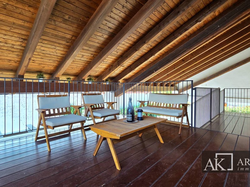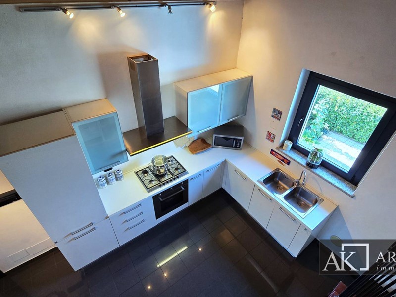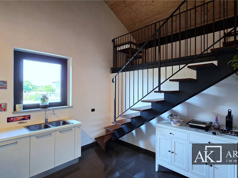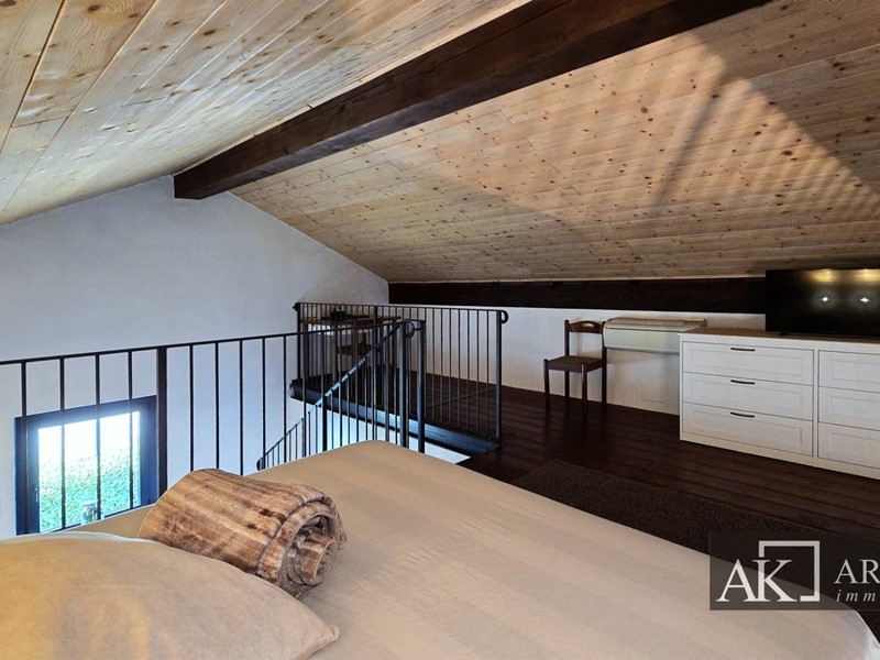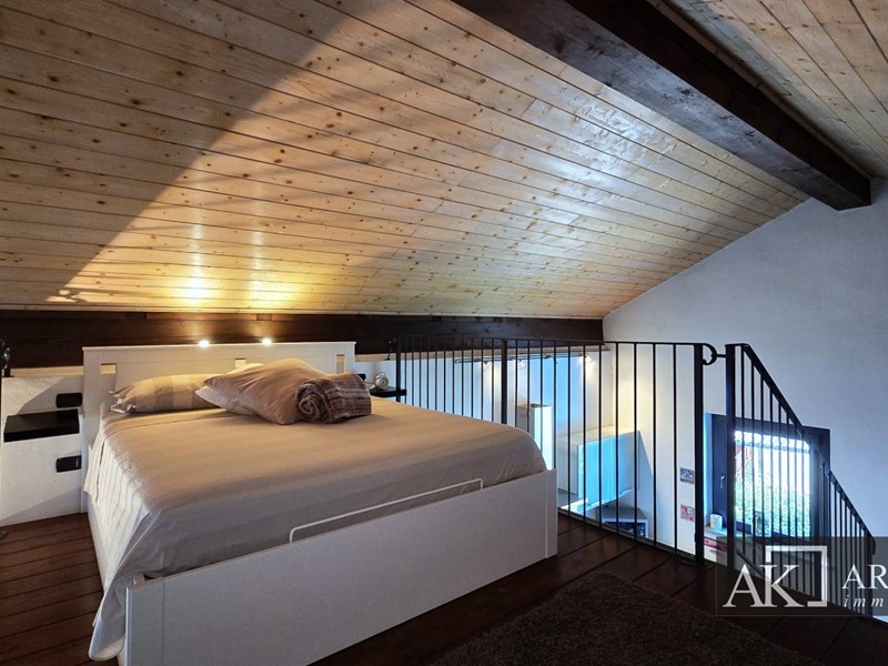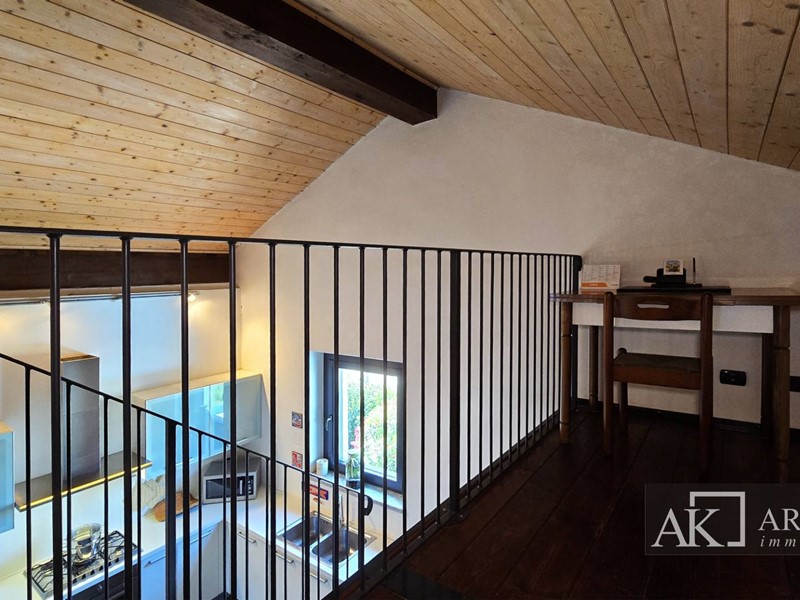 La seconda unità abitativa è un elegante monolocale con soppalco, recentemente ristrutturato in stile moderno. Lambiente è luminoso, curato nei dettagli e arricchito da un grande terrazzo e un giardino privato. Al piano terra si trovano anche due locali al rustico, ideali per ulteriori spazi abitativi o hobby.
