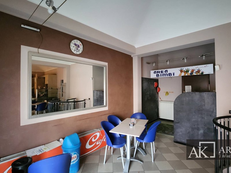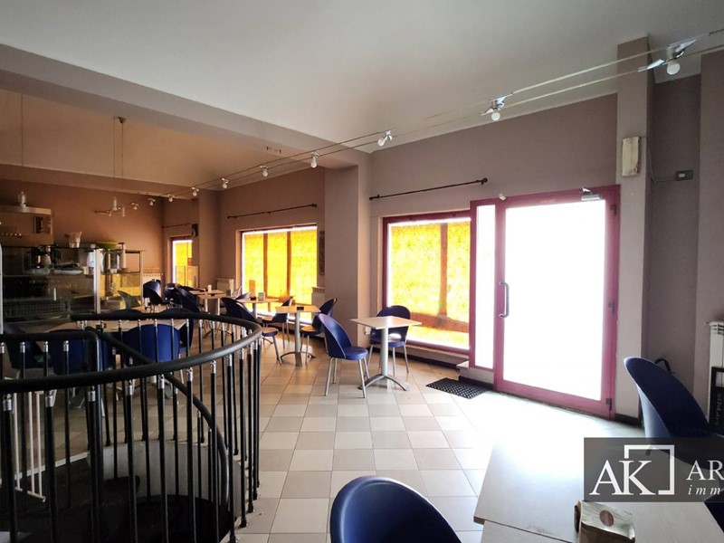 Al piano terra ampio locale con servizio igienico e tre vetrine.