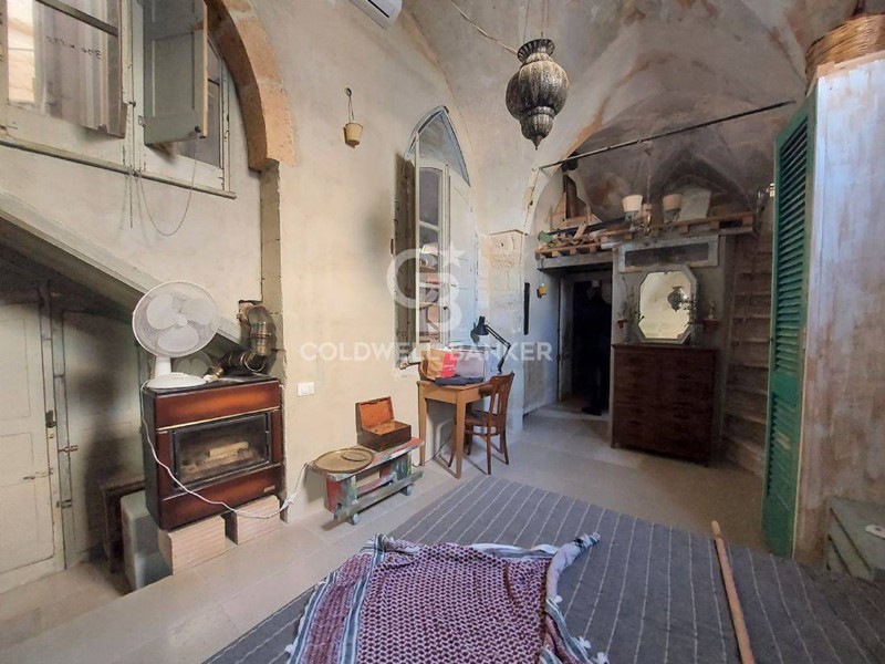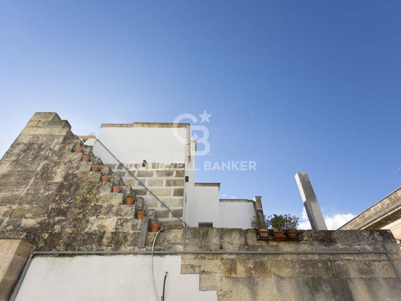 L'intera struttura presenta tipiche caratteristiche delle dimore storiche salentine ambienti interni totalmente voltati, particolari architettonici in pietra leccese, chiostrina e terrazzi a livello. Al primo appartamento, di circa 150mq, si giunge tramite una comoda scala che si apre su una meravigliosa terrazza a livello di pertinenza esclusiva. L'immobile è concepito come un'abitazione moderna ed è composto da un ampio open space con cucina a vista, zona pranzo e angolo living con caminetto, 2 camere da letto, cabina armadio e 2 bagni. Attraverso una scala a vista si accede ad una zona studio con ulteriore camera .