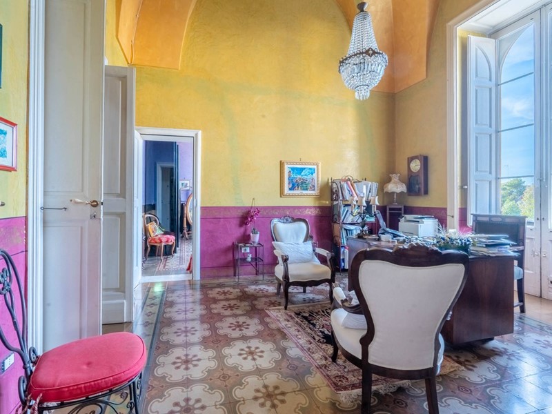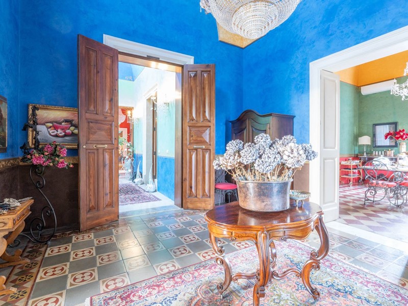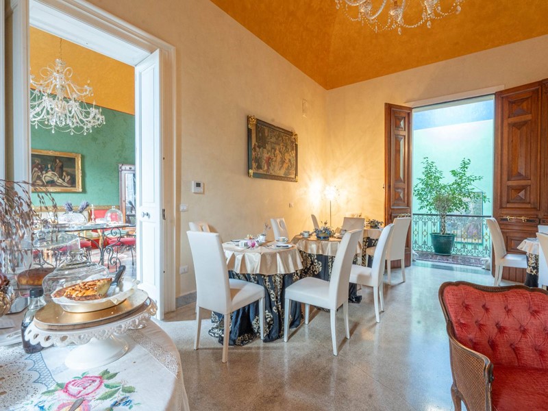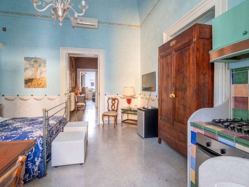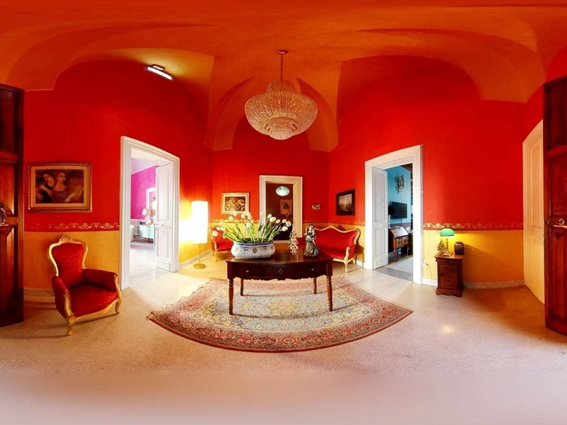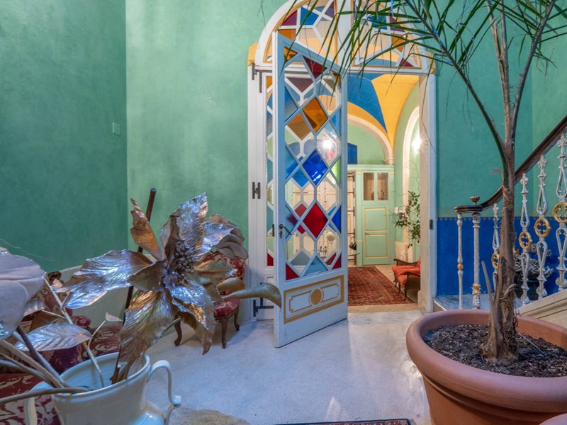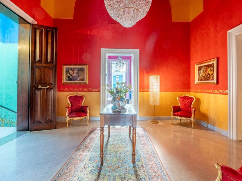 L'ingresso è da imponente portone e incanta sin da subito, dall'atrio regale alla bellissima scalinata, che conduce lentamente al piano nobile, dove ogni sala, ogni camera è una vera meraviglia, con le sue volte fiabesche, dalle tinte vivaci e allegre, con grandi lampadari artistici in cristallo e vetro soffiato di Murano, scelti accuratamente per valorizzare in maniera coerente tutti i magnifici ed ampi spazi interni. Un susseguirsi di colori e giochi di luce per creare emozioni e atmosfere uniche, calde e misteriose. Questa dimora storica è molto luminosa in quanto gode di balconi e porte finestre molto alte e con triplo affaccio, sulla Via XX Settembre e quindi sul Parco della Stazione, su Corso Re d'Italia dove abbiamo l'ingresso e sulla strada parallela via Albanese Fedele. Attualmente è separata in due appartamenti per ospitare da una parte un'ampia sala da pranzo, un salone con camino, una cucina abitabile, una lavanderia, tre suites di cui una attualmente dedicata ad elegante studio e due bagni. Dall'altra una sala che separa quattro charme suites di cui una con soppalco, una con angolo cottura e con quattro bagni. Completi di separati impianti di riscaldamento autonomo a gas metano e condizionatori con split a muro. L'intero lastrico solare di proprietà attualmente dedicato a solarium di circa 600 mq potrebbe essere trasformato in elegante esclusivo rooftop bar e zona relax o spa con vista panoramica sulla città.