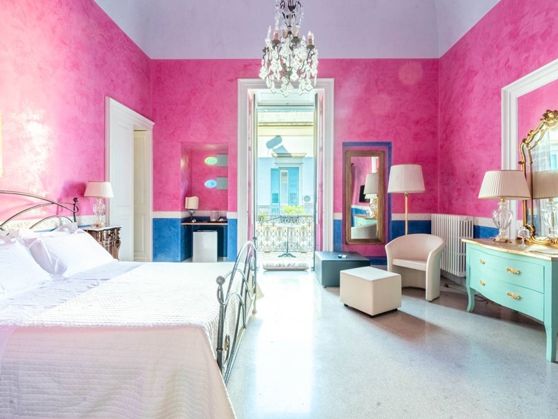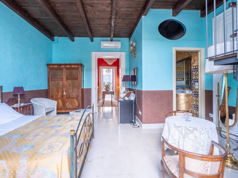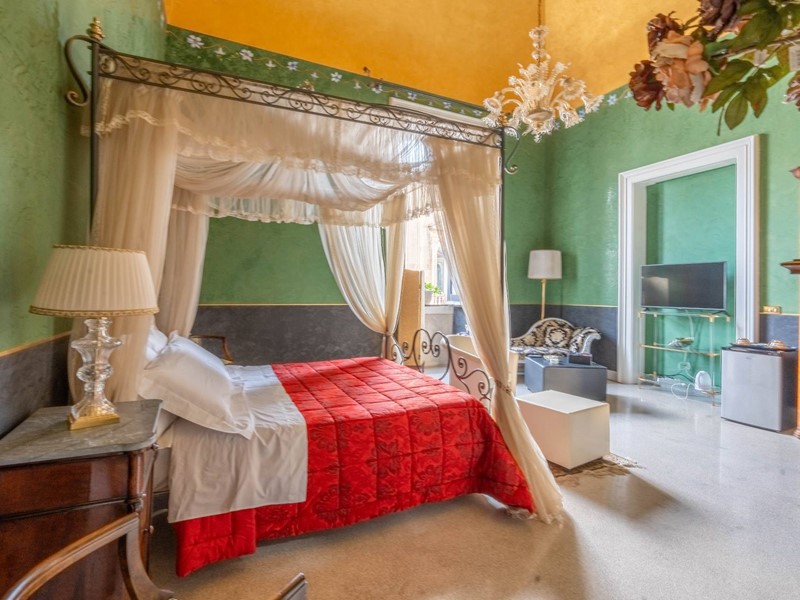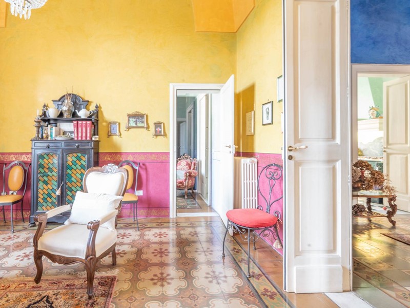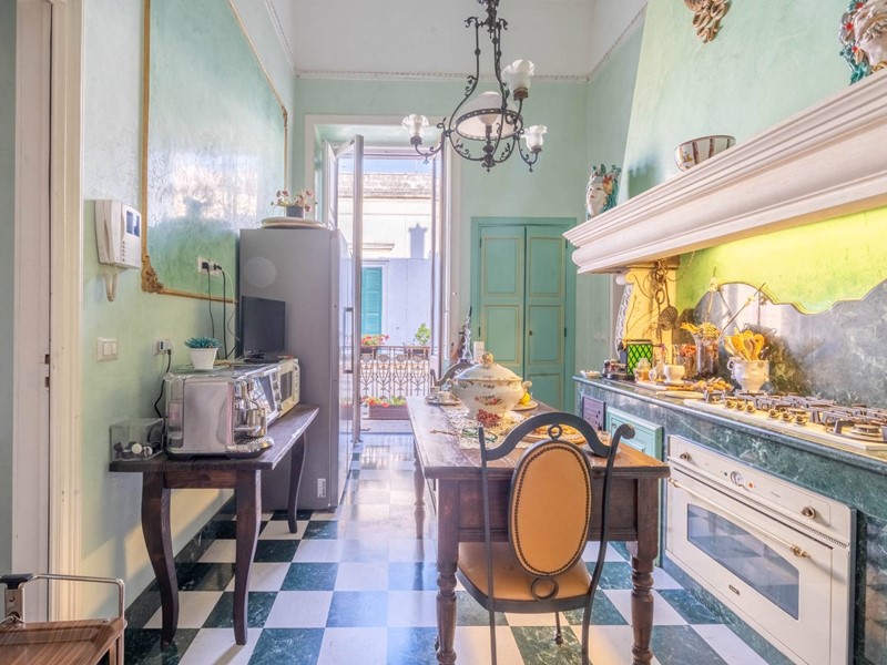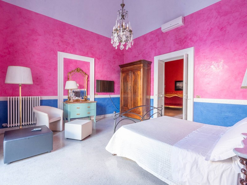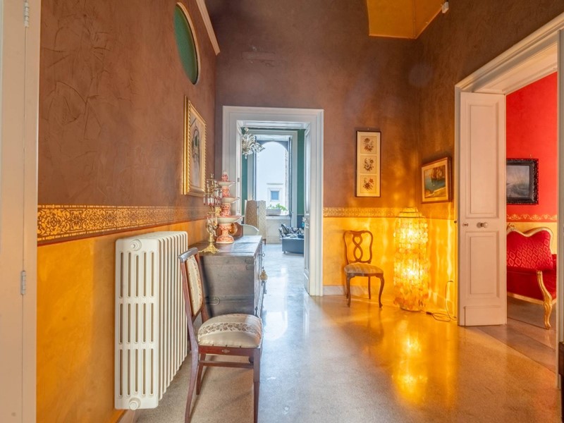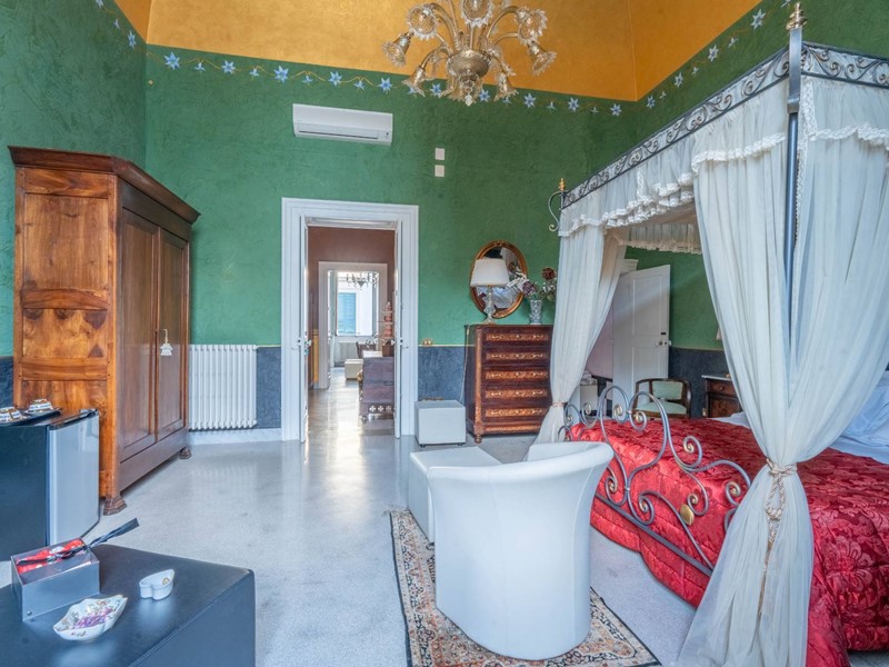 L'ingresso è da imponente portone e incanta sin da subito, dall'atrio regale alla bellissima scalinata, che conduce lentamente al piano nobile, dove ogni sala, ogni camera è una vera meraviglia, con le sue volte fiabesche, dalle tinte vivaci e allegre, con grandi lampadari artistici in cristallo e vetro soffiato di Murano, scelti accuratamente per valorizzare in maniera coerente tutti i magnifici ed ampi spazi interni. Un susseguirsi di colori e giochi di luce per creare emozioni e atmosfere uniche, calde e misteriose. Questa dimora storica è molto luminosa in quanto gode di balconi e porte finestre molto alte e con triplo affaccio, sulla Via XX Settembre e quindi sul Parco della Stazione, su Corso Re d'Italia dove abbiamo l'ingresso e sulla strada parallela via Albanese Fedele. Attualmente è separata in due appartamenti per ospitare da una parte un'ampia sala da pranzo, un salone con camino, una cucina abitabile, una lavanderia, tre suites di cui una attualmente dedicata ad elegante studio e due bagni. Dall'altra una sala che separa quattro charme suites di cui una con soppalco, una con angolo cottura e con quattro bagni. Completi di separati impianti di riscaldamento autonomo a gas metano e condizionatori con split a muro. L'intero lastrico solare di proprietà attualmente dedicato a solarium di circa 600 mq potrebbe essere trasformato in elegante esclusivo rooftop bar e zona relax o spa con vista panoramica sulla città.