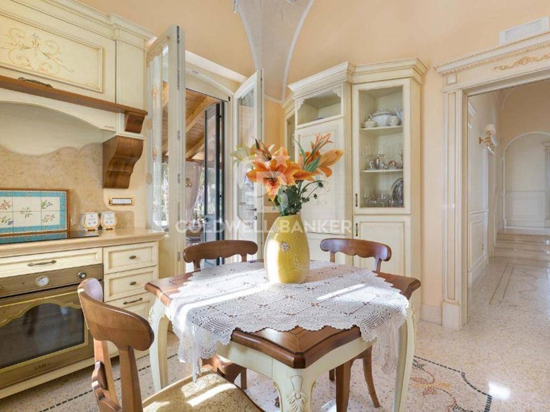 La distribuzione degli spazi interni è ottimamente pensata per garantire comfort e funzionalità: un ampio salone con camino crea un'atmosfera accogliente e ideale per le serate in famiglia o con gli amici, la sala da pranzo adiacente è perfetta per cene formali, mentre la cucina abitabile, modernamente attrezzata, soddisfa ogni esigenza culinaria.