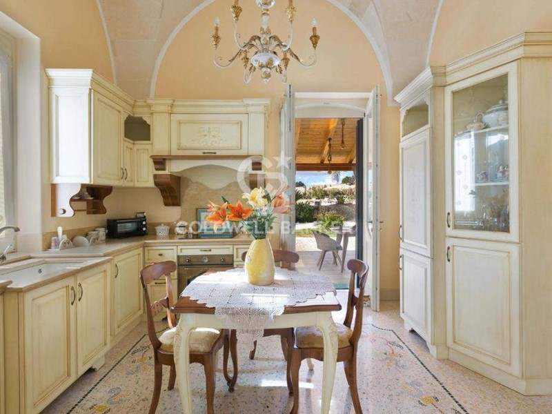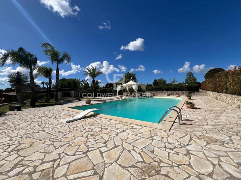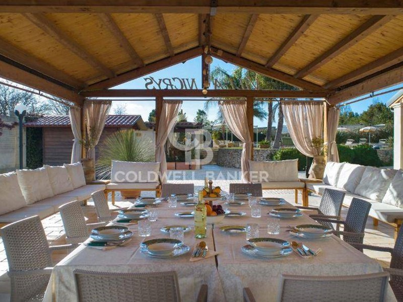 Gli spazi esterni sono un vero e proprio paradiso terrestre che include una piscina di generose dimensioni (12x6x2,3 h), circondata da un'ampia area solarium con doccia esterna, un gazebo, veranda attrezzata con una cucina in muratura e una spaziosa zona pranzo all'aperto con barbecue, ideali per ospitare eventi o semplicemente per godersi il clima mite della regione. A completare la zona esterna un maestoso gazebo in legno, perfetto per trascorrere piacevoli giornate all'aperto, offrendo un rifugio ombreggiato e confortevole.