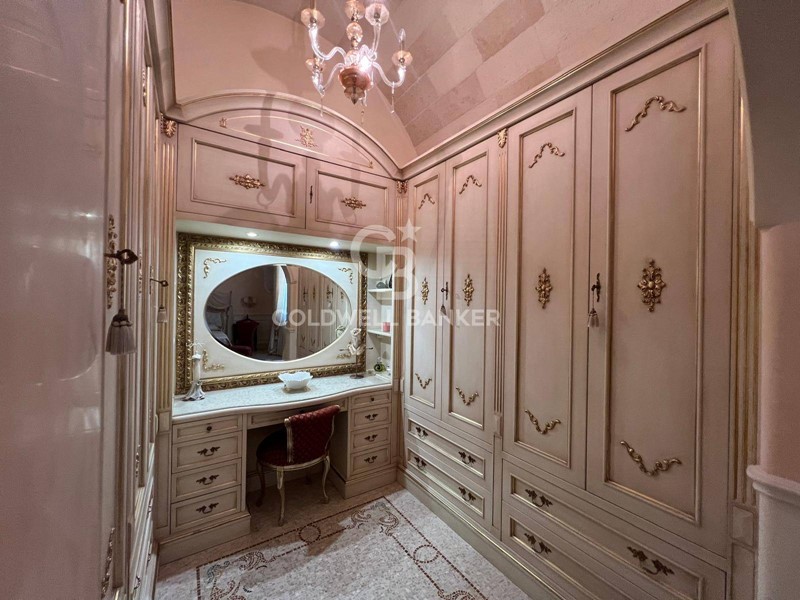 La villa colpisce per la sua maestosità e per gli interni raffinati, impreziositi da splendidi mosaici sui pavimenti e dai caratteristici tetti con volte a stella, che conferiscono un'eleganza senza tempo.