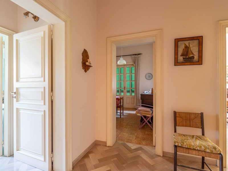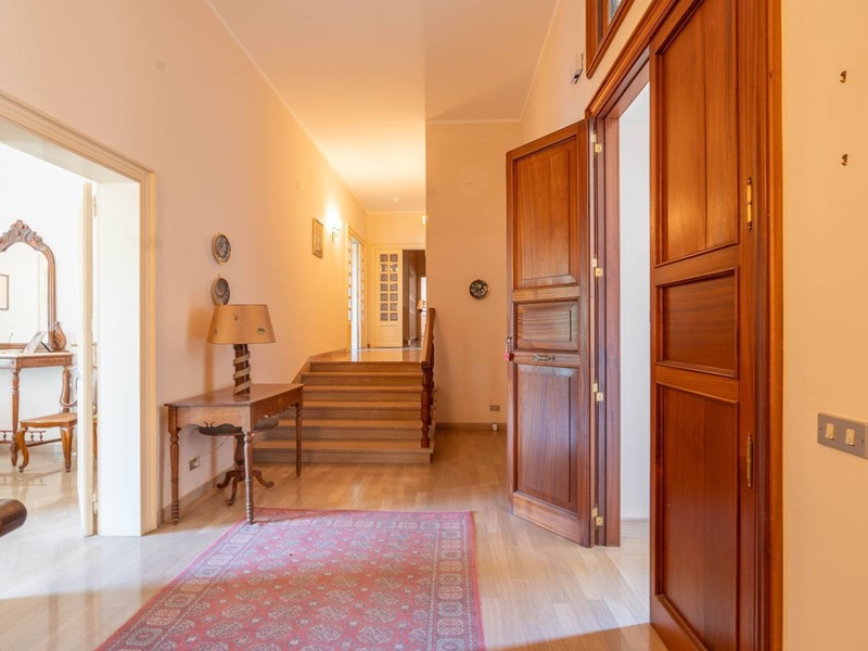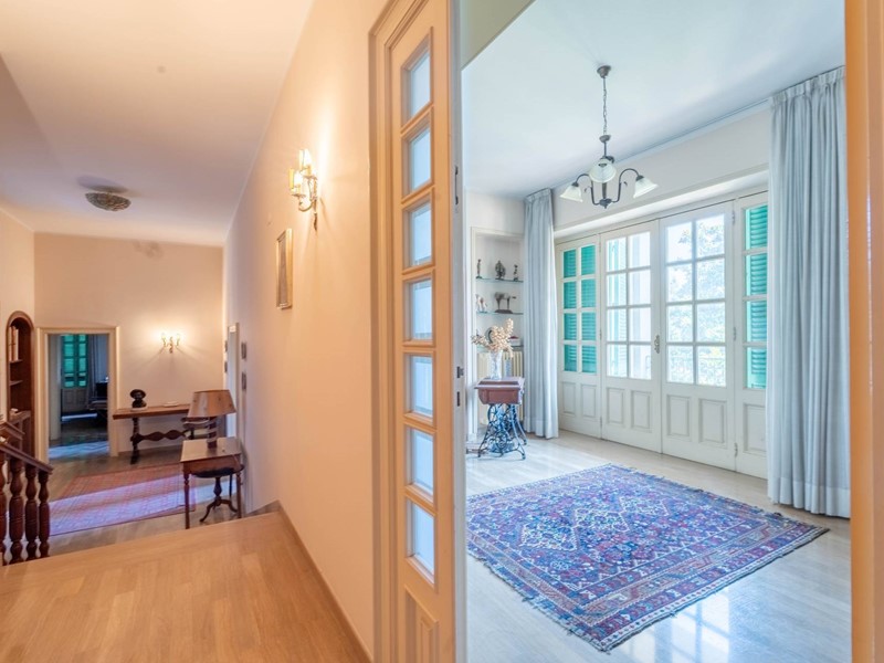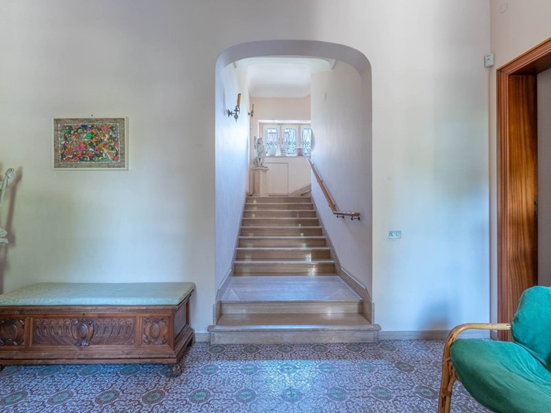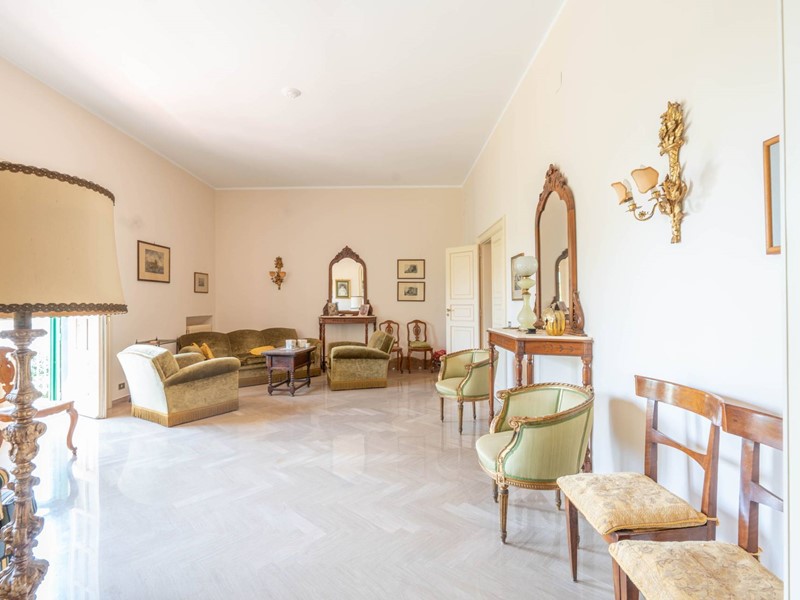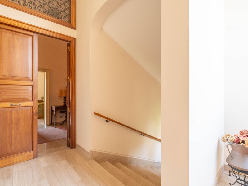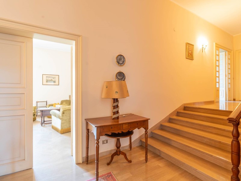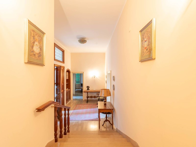 Al primo piano si accede attraverso una maestosa scalinata in marmo o da una scala privata riservata. Lingresso apre su ambienti luminosi e ariosi: un ampio salone doppio con affaccio su un balcone panoramico, un elegante studio ideale per il lavoro da remoto, una cucina abitabile con accesso diretto al balcone e una sala da pranzo accogliente per momenti di convivialità. Completa il piano un bagno, un comodo ripostiglio e una pratica lavanderia.