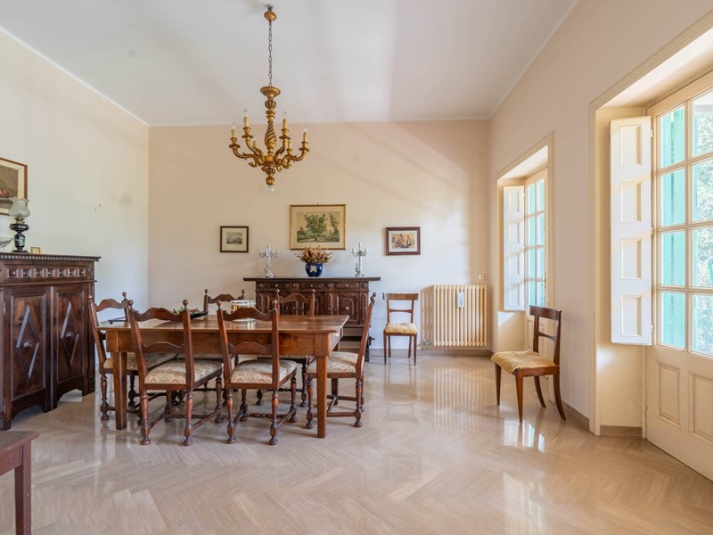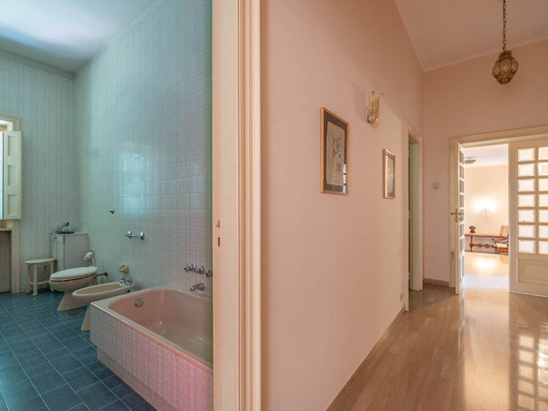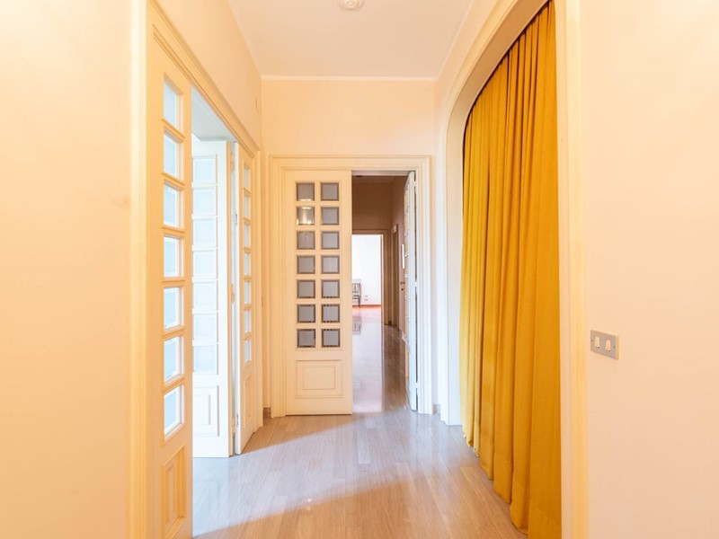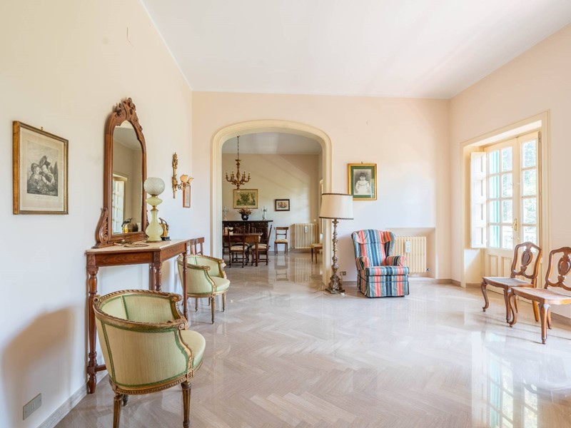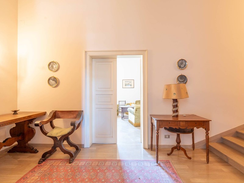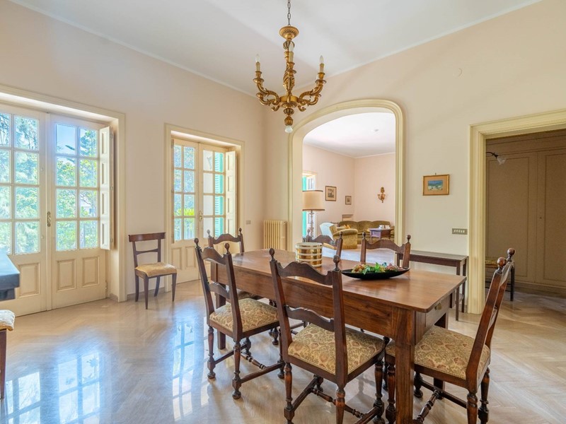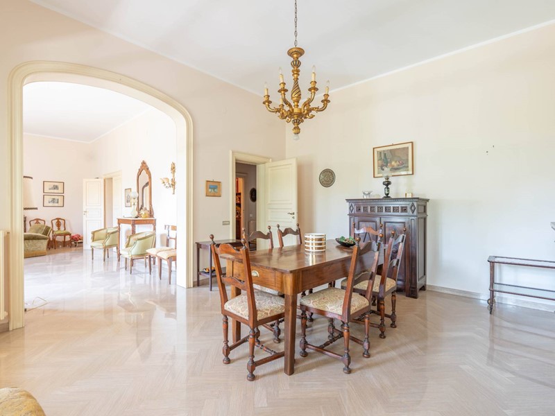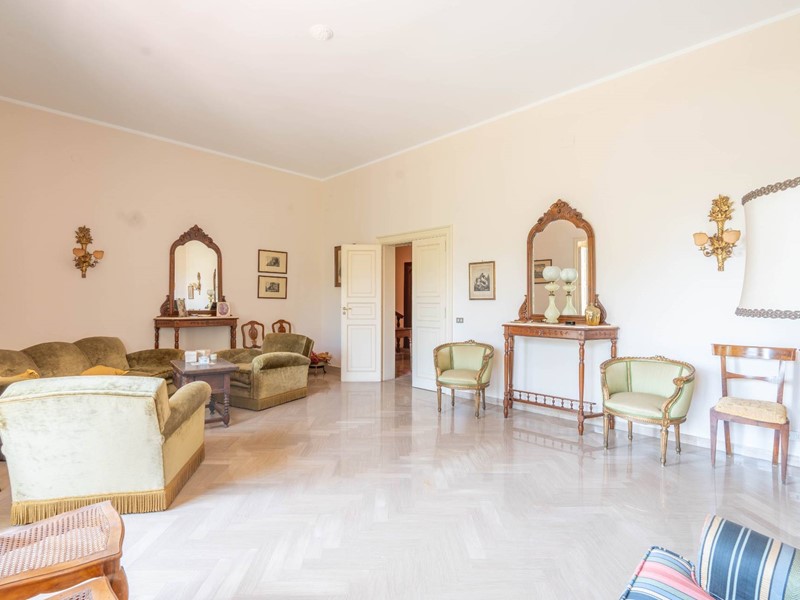 Al primo piano si accede attraverso una maestosa scalinata in marmo o da una scala privata riservata. Lingresso apre su ambienti luminosi e ariosi: un ampio salone doppio con affaccio su un balcone panoramico, un elegante studio ideale per il lavoro da remoto, una cucina abitabile con accesso diretto al balcone e una sala da pranzo accogliente per momenti di convivialità. Completa il piano un bagno, un comodo ripostiglio e una pratica lavanderia.