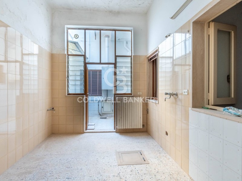 Il tinello e la cucina, situati verso il retro della casa, sono ambienti che possono essere trasformati in ununica grande cucina abitabile, con accesso diretto al cortile interno, dove è presente un piccolo pozzo luce. Questo spazio, nonostante le dimensioni ridotte, offre la possibilità di migliorare lilluminazione naturale degli ambienti interni e di creare una piccola zona verde o un angolo relax.