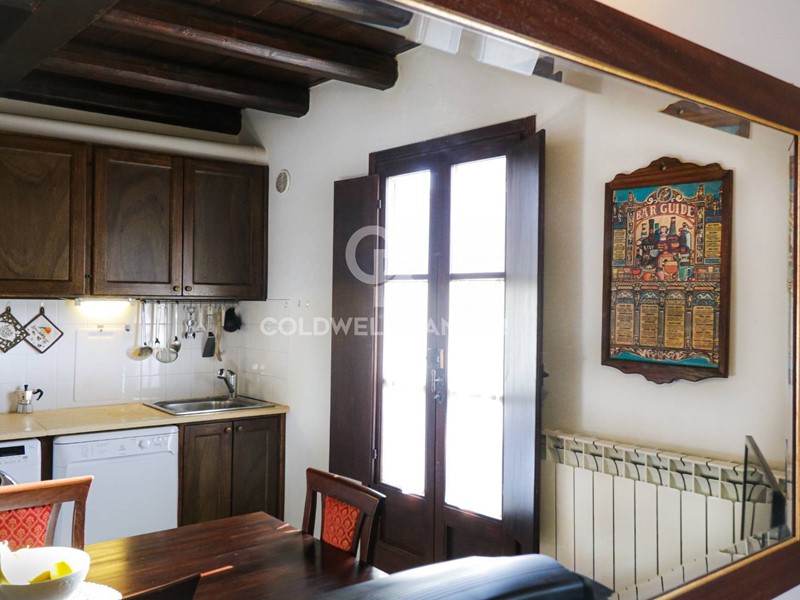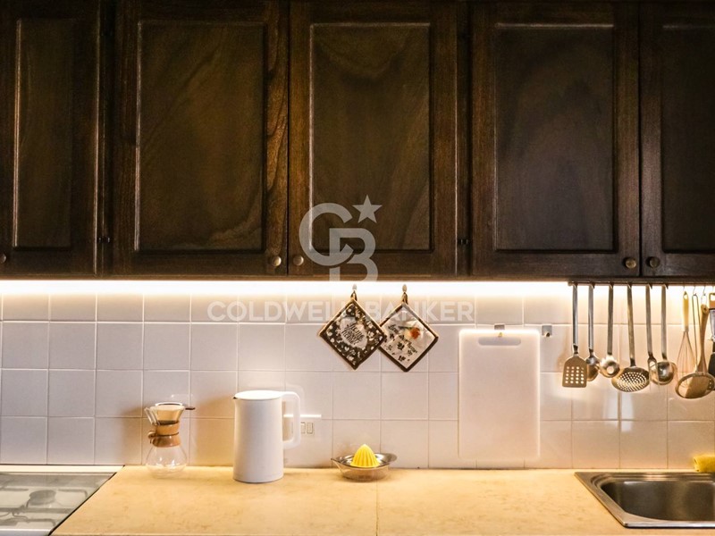 La zona giorno si articola in due spazi distinti ma armoniosamente collegati: un salone impreziosito da un magnifico camino in pietra e una cucina a vista con sala da pranzo. Due splendidi balconi regalano viste straordinarie: uno sulla corte interna e laltro sullarco della facciata principale, offrendo scorci unici e una luminosità che scalda il cuore.