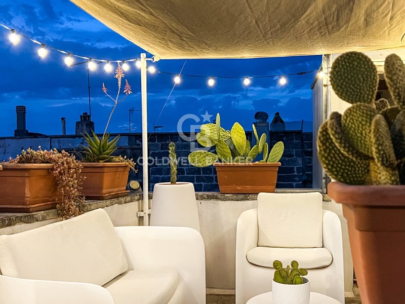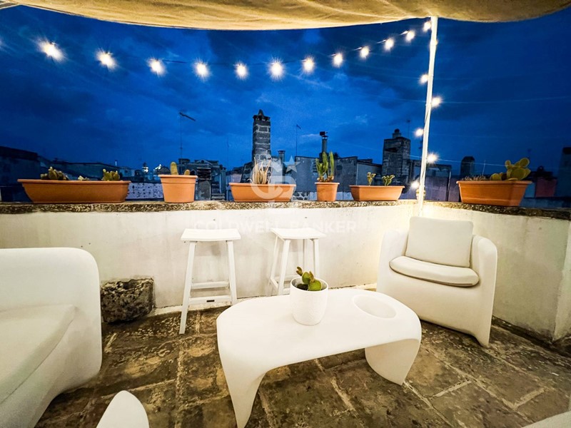 Una raffinata scala in pietra bianca conduce alla zona notte, dove due camere matrimoniali, un bagno e due terrazzi arredati attendono di sorprendere. Gli spazi esterni sono un vero gioiello: da qui si può ammirare un panorama mozzafiato sui tetti del centro storico e sui maestosi palazzi circostanti. Un quadro che incanta e conquista al primo sguardo.