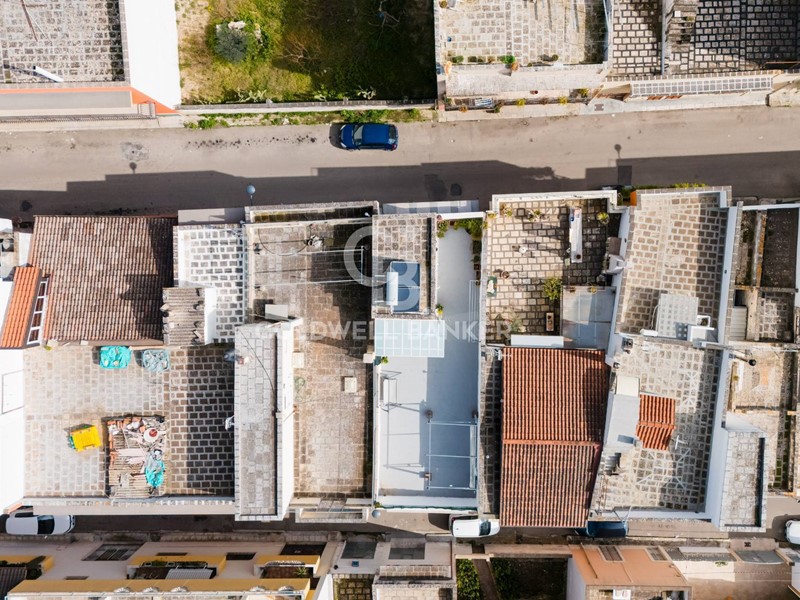 La zona notte si compone di due camere da letto, entrambe confortevoli e ben distribuite, di cui la matrimoniale arricchita da un balcone che si affaccia sulla strada posteriore, garantendo riservatezza e tranquillità. Due bagni moderni e funzionali, insieme a un disimpegno attrezzato con lavanderia, completano il livello abitativo. Da qui, una scala conduce al lastrico solare, un autentico spazio di relax, già predisposto con illuminazione e un gazebo amovibile, perfetto per godere delle serate estive. Non manca la predisposizione per un barbecue a gas metano, pensato per chi ama intrattenere ospiti in un contesto esclusivo.