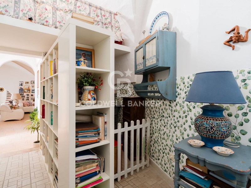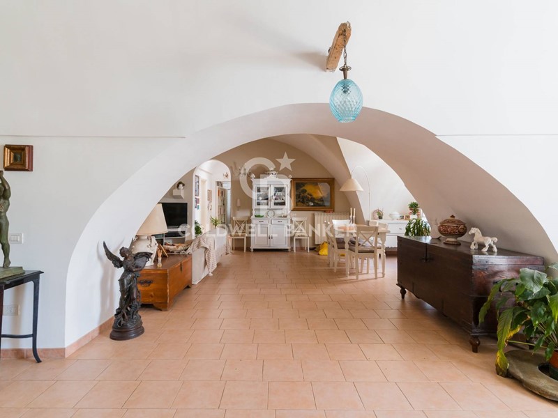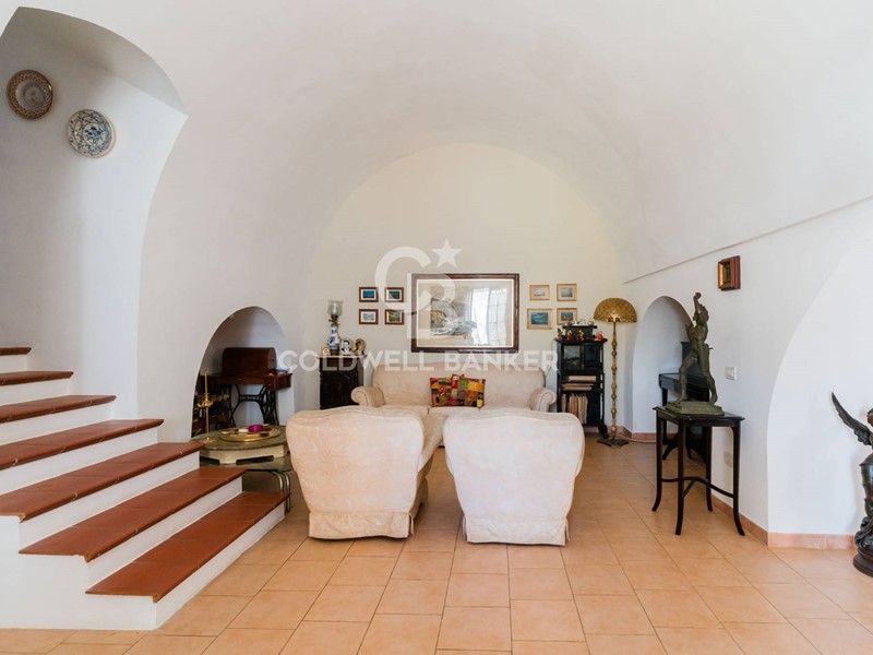 Salendo pochi gradini, si accede allingresso principale, un ambiente curato nei dettagli che lascia subito intravedere la bellezza degli spazi interni. Alla destra, un elegante studio si affaccia su una veranda privata, un angolo intimo e perfetto per chi cerca uno spazio riservato e luminoso. Di fronte, sottoposto di pochi gradini, ci si immerge nel cuore pulsante della casa: un living straordinariamente ampio, caratterizzato da imponenti volte a stella e nicchie incastonate nelle pareti, che donano fascino e profondità allambiente.