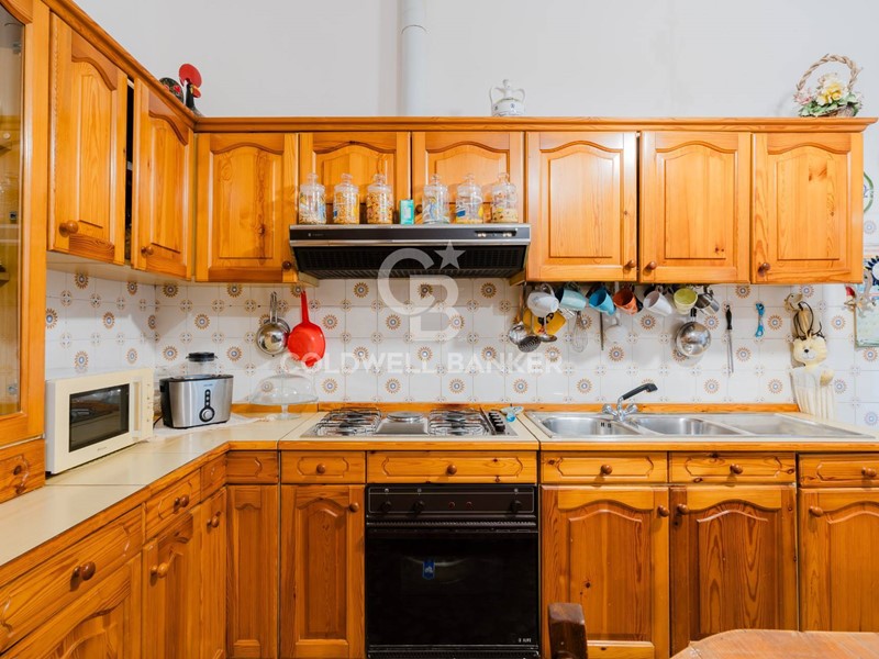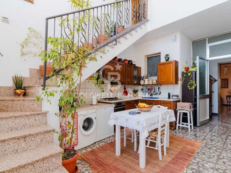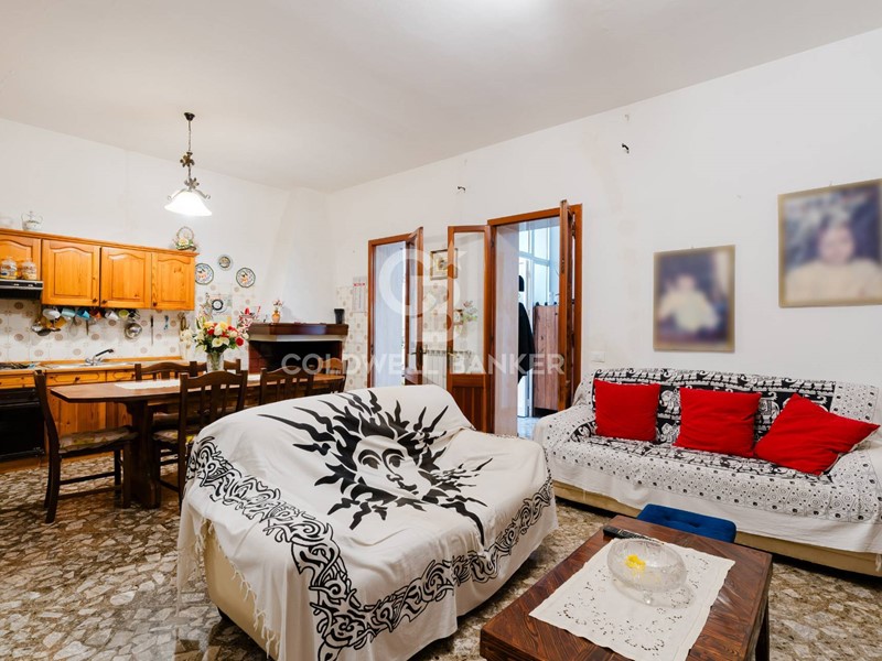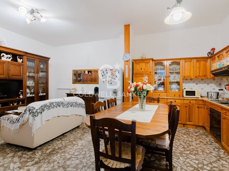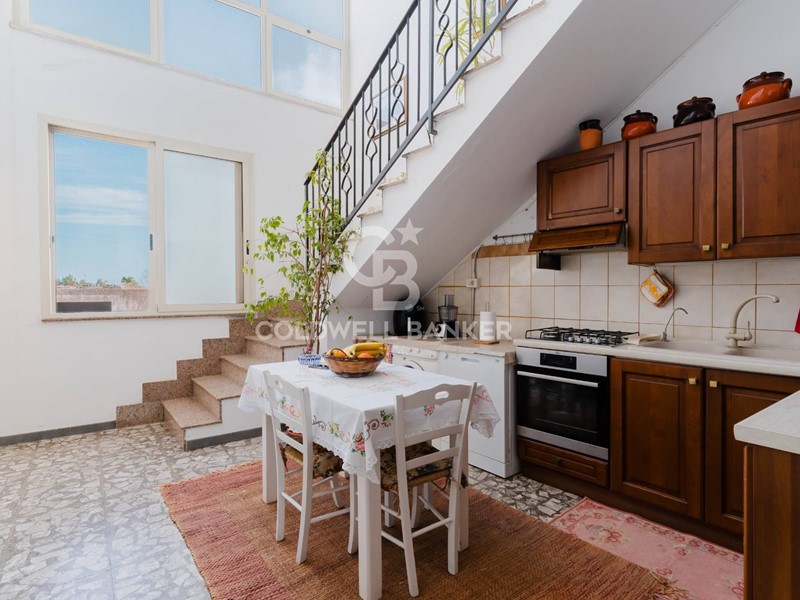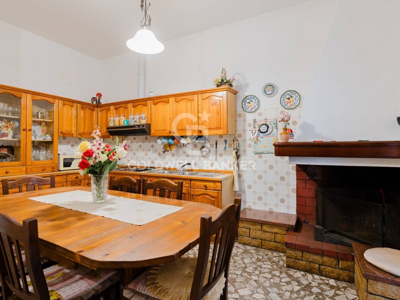 Al piano terra, si accede, attraverso uno scoperto antistante, ad una verandina di accesso, da cui si apre uno spazioso ingresso che disimpegna il soggiorno, la sala da pranzo, un ampia cucina abitabile con camino ed un bagno.