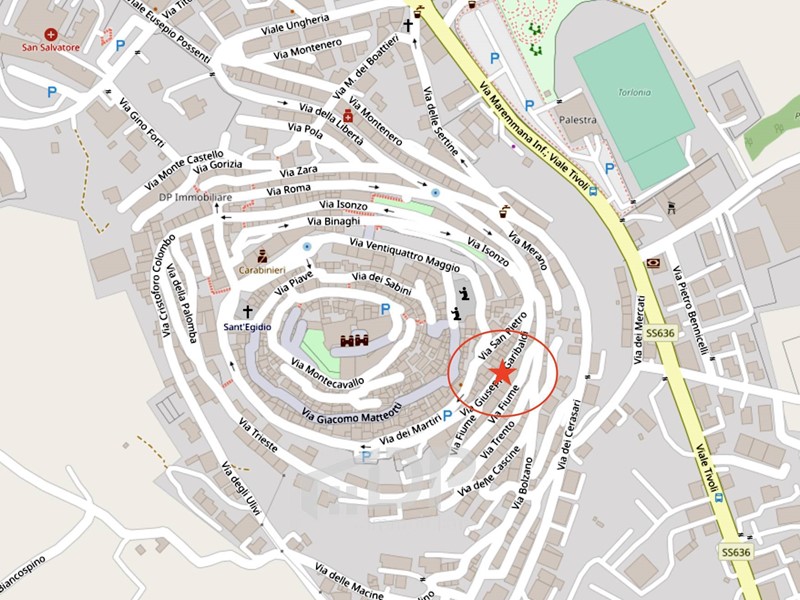 Ci troviamo su via Garibaldi, lo "Stradone", che porta al centro del paese, fuori dal centro storico, con una migliore possibilità di parcheggio, con diversi posti auro proprio di fronte l'edificio.