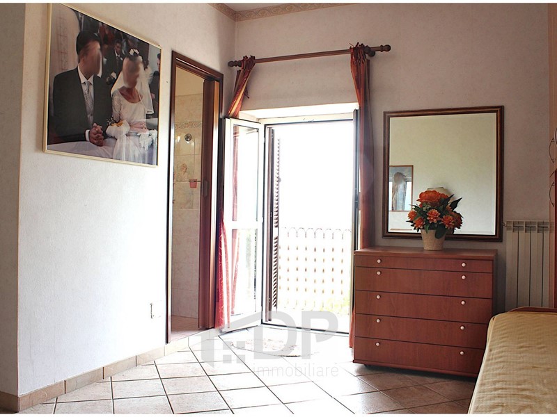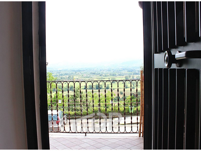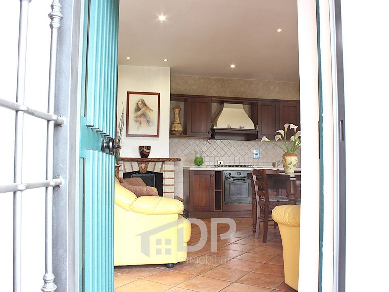 Entrando siamo nell'accogliente soggiorno con angolo cottura e il camino. Le camere da letto sono due, una al primo livello e uno al piano sovrastante: entrambe hanno il proprio bagno privato, offrendo comfort e privacy a tutti i membri della famiglia, e il proprio balcone che affaccia verso il panorama della Sabina. Al primo piano c'è un comodo ripostiglio con lo spazio e i servizi per la lavatrice; lungo la scala che collega i due piani è presente un soppalco per avere uno spazio in più.
