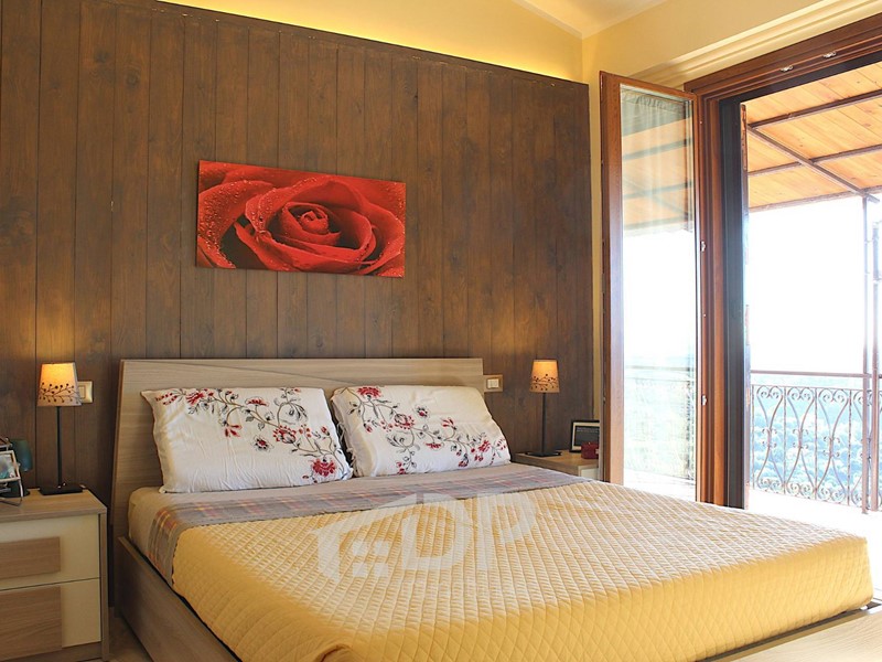 Il balcone angolare e terrazzato, ampio e luminoso, affaccia a sud-ovest e permette una vista sulla vallata sottostante, per godersi il sole e la bellezza della natura direttamente da casa, fino al tramonto.
