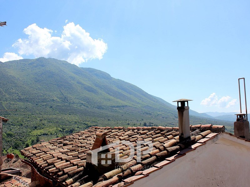 L'ingresso si apre su un disimpegno comune. Al piano terra si trova un salone con camino e angolo cottura, un bagno e una camera, tutto di circa 57 mq. Salendo al primo piano, un secondo salone con camino, angolo cottura in muratura e stufa a legna si affaccia sul balcone esposto a sud, con la vista verso il monte Gennaro e il Parco dei Monti Lucretili. Completano il piano con una superficie di circa 71 mq, una camera da letto, un bagno con antibagno e ripostiglio.