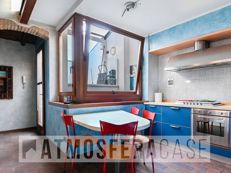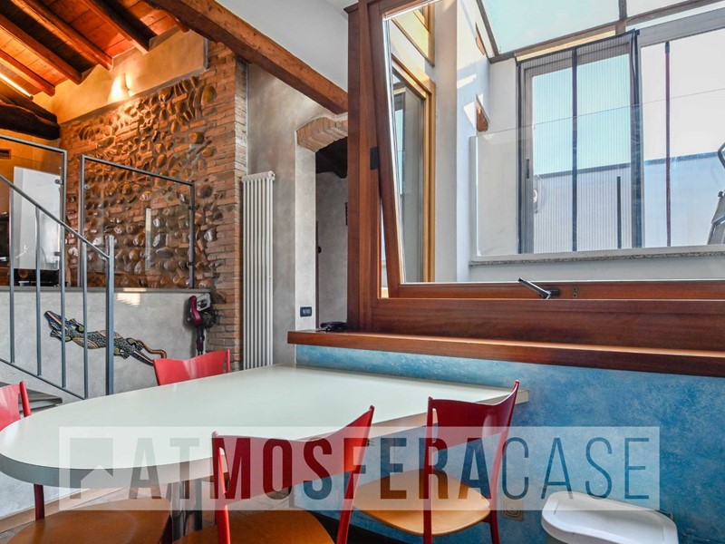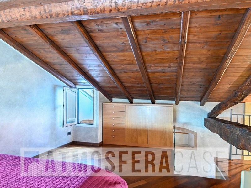 Atmosfera Case propone, nel centro storico e comodo a tutti i principali servizi, ampio appartamento bilocale mansardato in stile loft, posto al secondo ed ultimo piano, con travi in legno, originali e trattate, a vista e comodi spazi godibili.