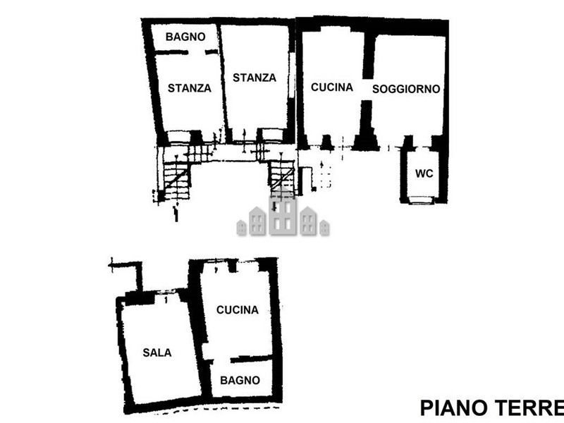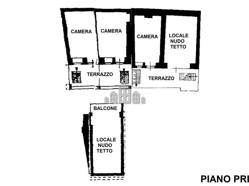 La proprietà comprende due fabbricati distinti. Il primo, di maggiori dimensioni, si sviluppa su tre livelli. I primi due piani ospitano quattro locali spaziosi, mentre lultimo livello offre tre stanze, oltre al suggestivo vuoto sul nudo tetto sottostante. Ogni piano è arricchito da affacci esterni ampi e luminosi, e al piano terreno si trovano inoltre due bagni, a completare la funzionalità degli spazi. Il secondo fabbricato, posto di fronte al principale, è composto da due locali al piano terreno, con bagno, e un ulteriore locale al piano primo.