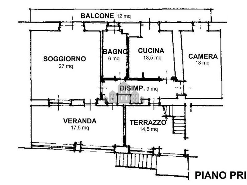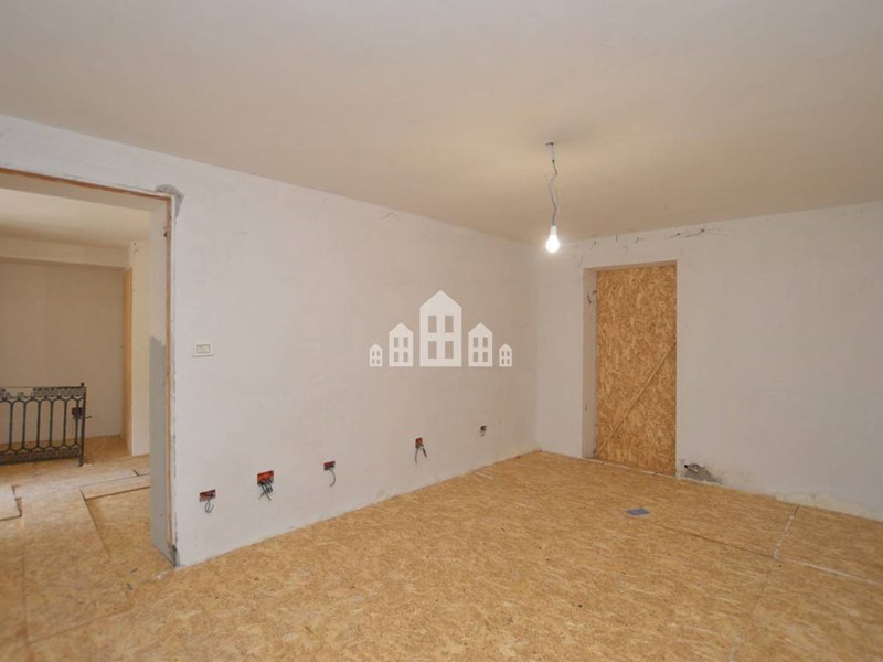 La scala esterna collega al piano superiore, dove il terrazzo immette nella veranda luminosa e nel disimpegno della zona abitativa. Da qui si raggiungono la cucina, il soggiorno, il bagno e la prima camera da letto, tutti con affaccio sul balcone che percorre in lunghezza la facciata. L'ultimo piano della casa al momento si presenta al grezzo, da ristrutturare con le predisposizioni, con la possibilità di ampliare così la zona abitativa.