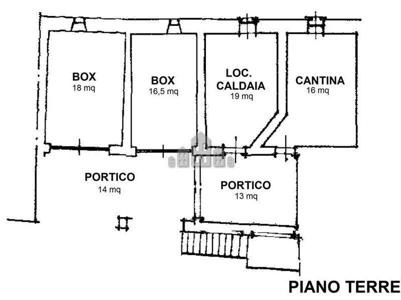 Al piano terreno vi è un porticato coperto dove si possono ricoverare fino a due auto, e anticipa di due box auto singoli. Sempre al piano terreno vi sono una cantina, il locale caldaia e un secondo porticato chiuso.