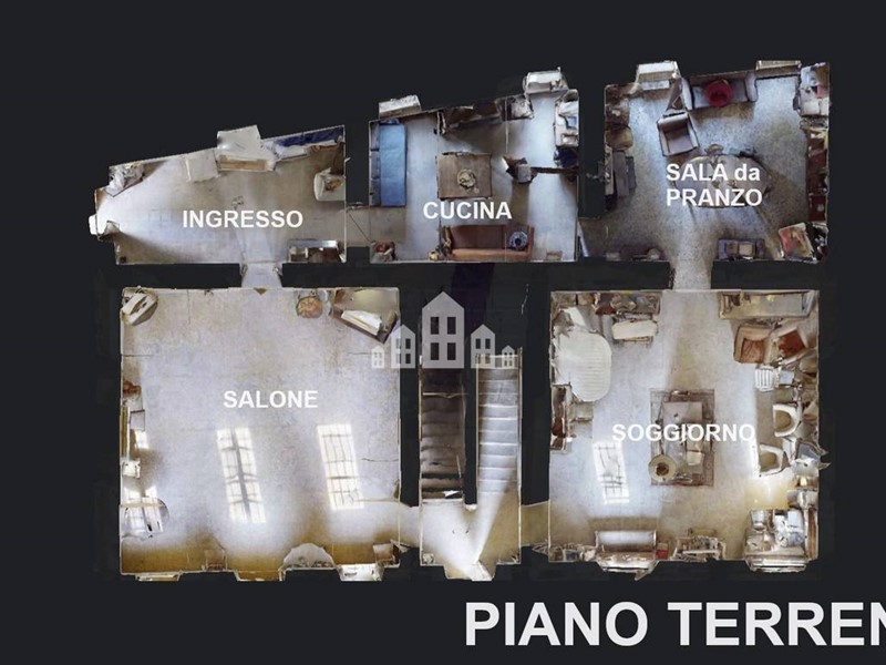 Al piano terra, la sala principale affrescata con una suggestiva volta, rappresenta sicuramente la stanza più scenografica della casa, affiancata da un ampio soggiorno, una cucina funzionale, una sala da pranzo e un accogliente ingresso.