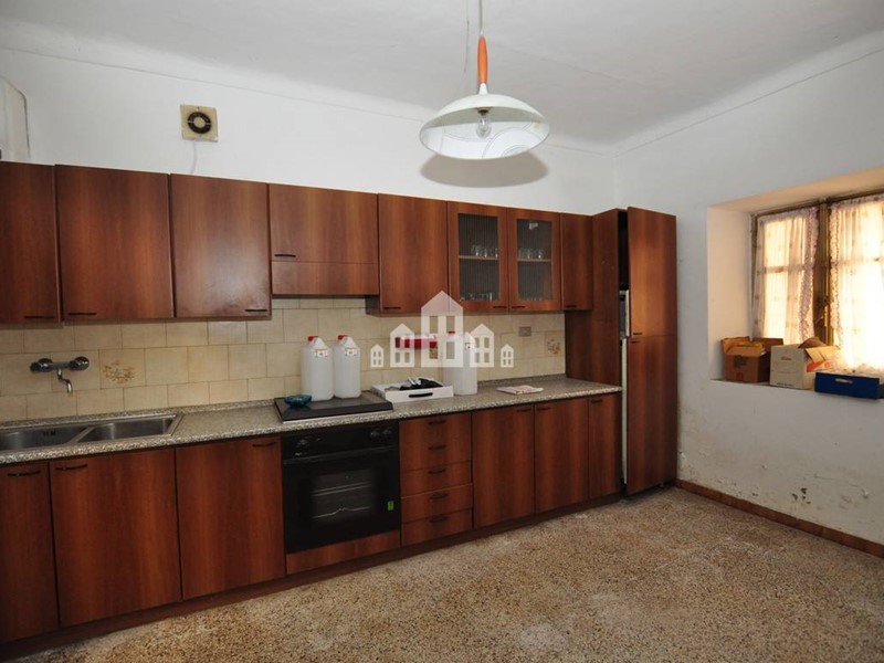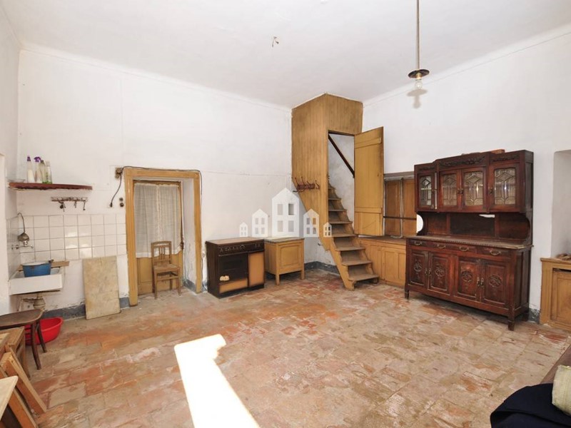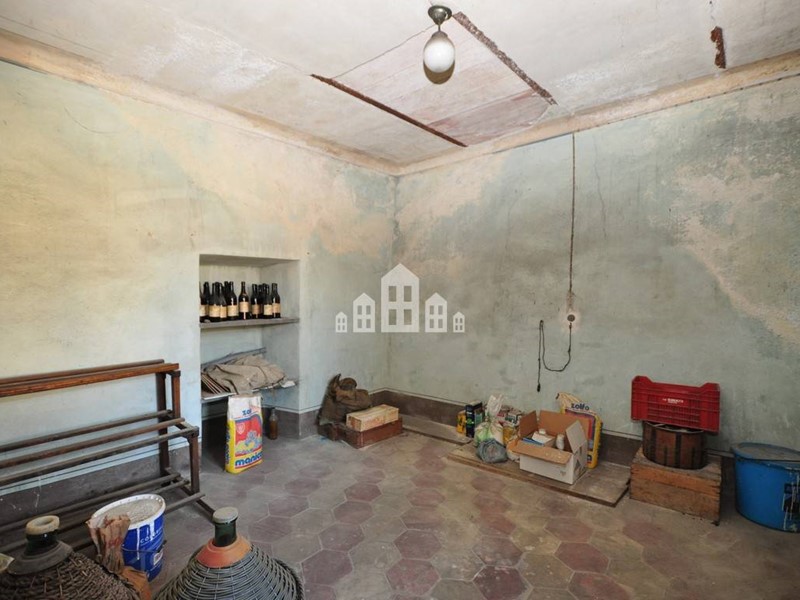 Sul lato strada, si trova un vano attrezzato di serrande, testimonianza del locale commerciale che un tempo vi trovava dimora. Proseguendo lungo la facciata, è presente l'accesso al cortile comune, intorno al quale si snodano due bracci del fabbricato. Oltre questo, è presente il cancello carraio per il cortile privato della casa e infine, la parte più abitabile del casolare, collegata internamente e dotata di riscaldamento.