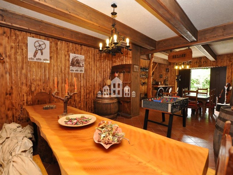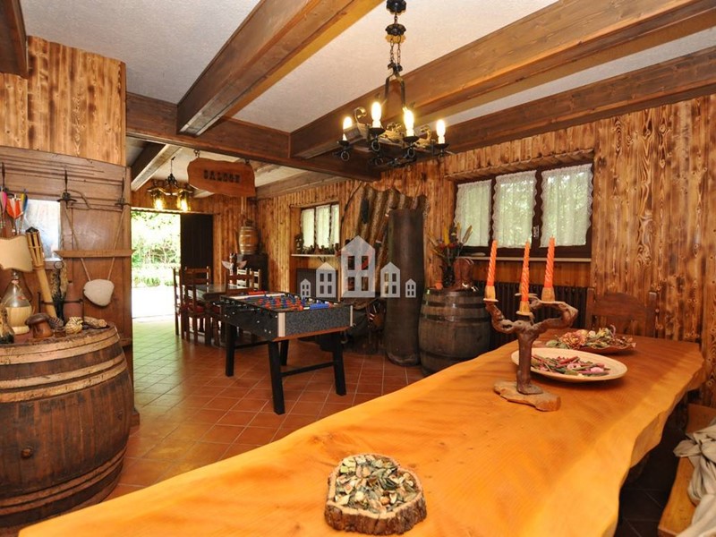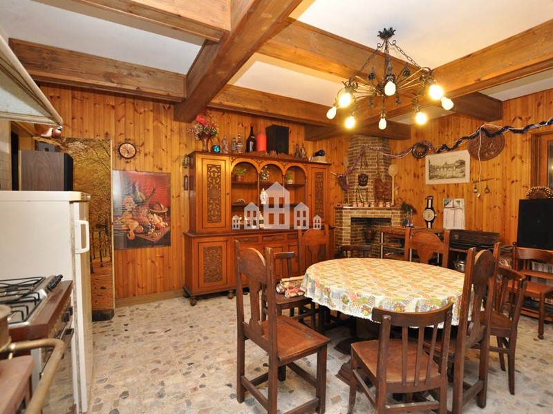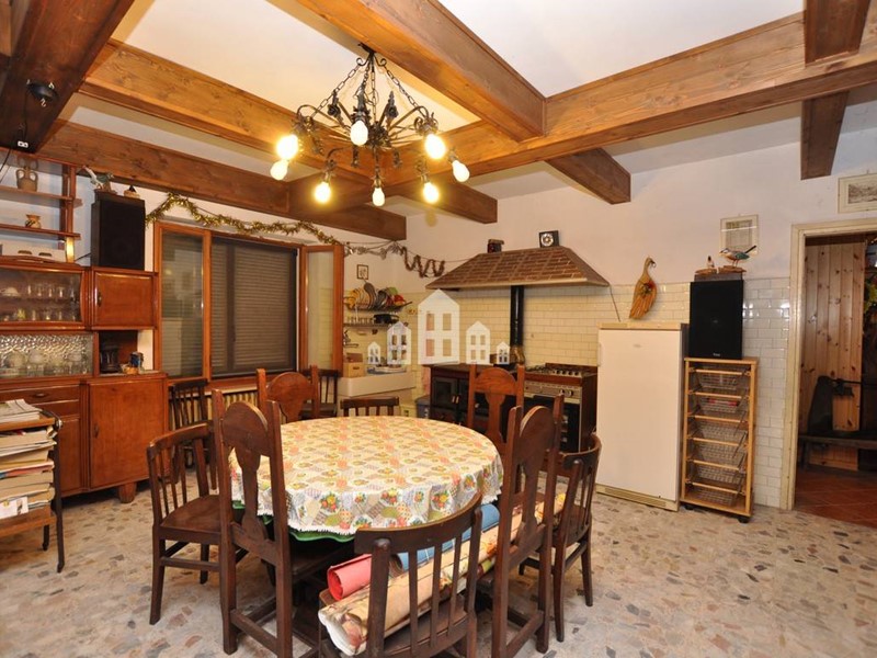 Al piano terreno, voi sono una rimessa che utilizzata come tavernetta in legno, ideale per momenti conviviali. Adiacente a essa, un ampio vano cucina con camino aggiunge un tocco di calore e tradizione, rendendo questo spazio perfetto per cene in famiglia o con amici.