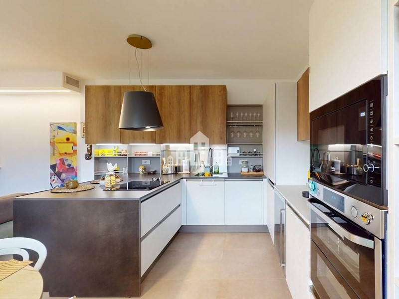 Lappartamento si distingue per il suo taglio contemporaneo, con spazi aperti e luminosi che si affacciano sullo spazioso balcone che percorre tutta la lunghezza dell'alloggio. Viene ceduto completamente arredato, con mobili di pregio firmati Calligaris e una cucina Veneta di alta qualità.