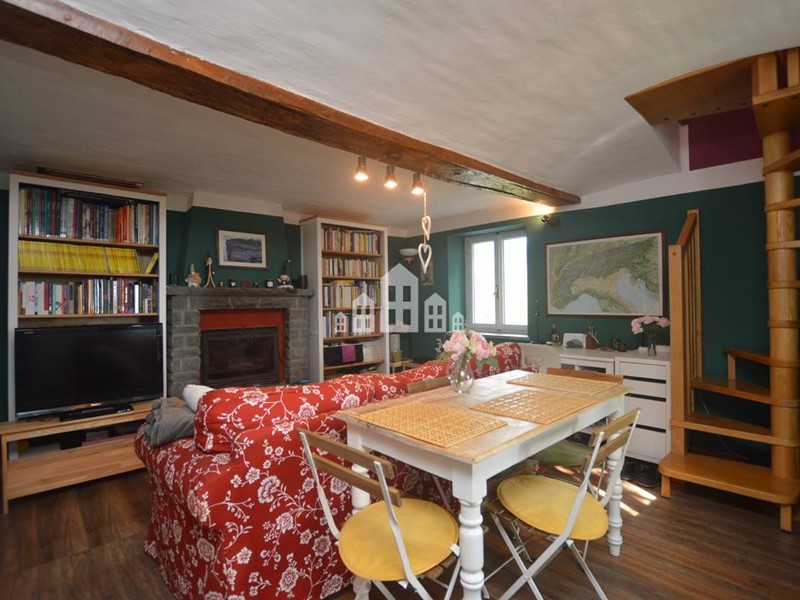 L'interno della casa è altrettanto affascinante. Un vero gioiello, curato nei minimi dettagli. Appena varcata la soglia, ci si trova nel soggiorno caloroso e accogliente, dove il camino centrale diventa protagonista delle serate invernali. Qui, potrai rilassarti davanti al fuoco scoppiettante, con un buon libro o in compagnia delle persone care. La scala in legno, che si integra armoniosamente con l'ambiente, conduce alla zona notte.