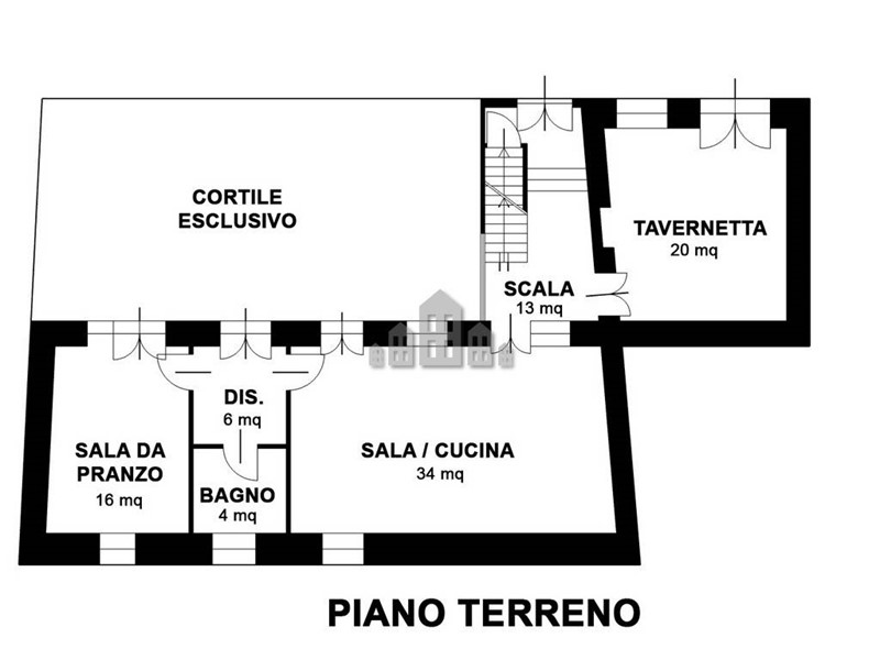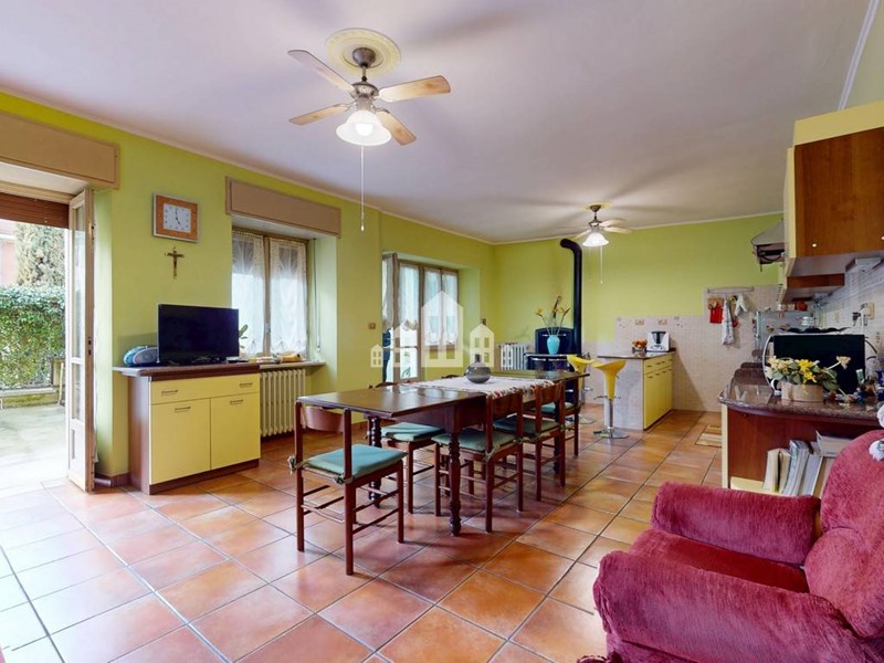 Salendo al piano terreno, si accede al primo alloggio, composto da un soggiorno, una cucina abitabile, una sala da pranzo, un bagno con vasca, un disimpegno funzionale e una tavernetta con camino, ambiente caldo e conviviale perfetto per momenti in famiglia o con amici.