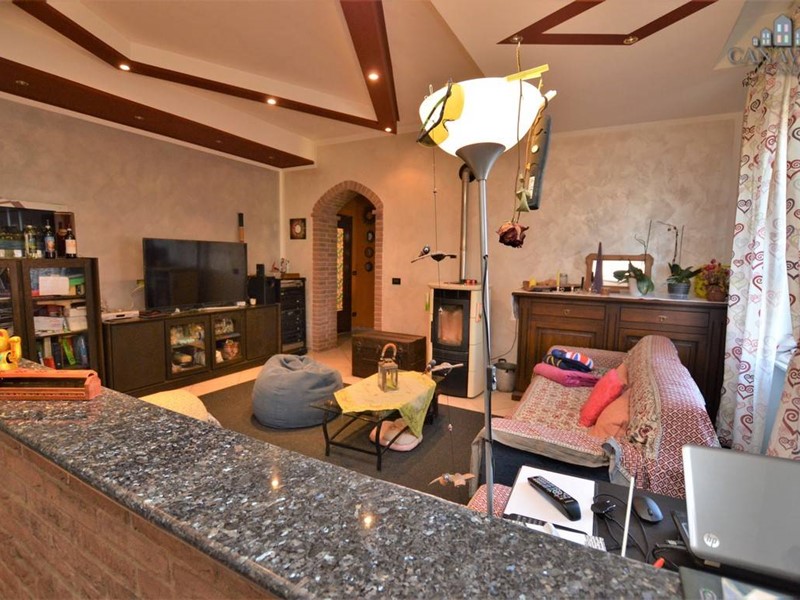 In posizione tranquilla e residenziale, comoda sia al centro paese che al casello autostradale. Soluzione indipendente su tre lati, con area esterna privata. Il piano terreno attualmente ospita i locali accessori, quali la lavanderia, la comoda tavernetta, una cantina e un locale deposito utilizzabile anche come ricovero auto. La zona abitativa si sviluppa interamente al piano primo. Lingresso è living sul soggiorno impreziosito da un gioco geometrico di soffittatura con faretti e da inserti in mattoni a vista come nel muretto che delimita lingresso e nellarco che immette nel disimpegno. La cucina è abitabile e gode dellaffaccio sul proprio balcone. Sullo stesso livello vi sono quattro camere da letto, di cui una con proprio bagno annesso e vi sono altri due servizi. Limmobile è stato ristrutturato
