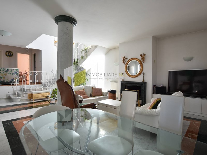 La bellissima scala in marmo conduce al piano primo dove troviamo un ampio spazio da poter utilizzare a seconda delle esigenza e dal quale si ha accesso ad un'incantevole terrazza abitabile ed a un balcone. Infine abbiamo uno studio utilizzabile anche come camera e il bagno con doccia e finestra.