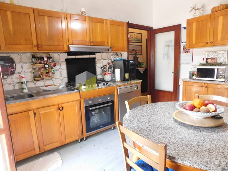 Con accesso da gradevole giardino comune, al suo interno l'appartamento si compone di: ingresso tradizionale con disimpegno, ampio e luminoso soggiorno con balcone vista diretta sui monti pisani, cucina abitabile ben separata provvista di ripostiglio/dispensa e balcone, stanza studio (all'occorrenza: quarta camera), disimpegno notte, tre camere (due matrimoniali ed una singola, di cui una con balcone), e due bagni finestrati.