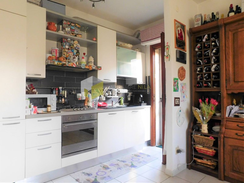 In particolare l'abitazione qui in vendita, ristrutturata nel 2013 e con impianto idraulico nuovo e pavimentazione nuova, si trova al piano terra rialzato della villetta, ed è composta da ingresso tradizionale, salone doppio con terrazzo e caminetto, tinello + cucinotto (provvisto di accesso diretto al giardino), tre camere (matrimoniale, media e singola), e bagno finestrato.