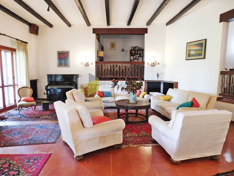Cuore dellabitazione sono lo spettacolare salone di 70 mq interamente affacciato sul grande porticato, ambiente ideale dove godersi piacevoli pranzi allaperto, momenti di relax e da cui ammirare lArno e l'elegante sala da pranzo con un maestoso camino; intorno a questi ambienti si sviluppa il resto della casa con un totale di 7 camere, la cucina con un antico focolare e un balcone, 3 bagni finestrati, lavanderia e ripostigli.