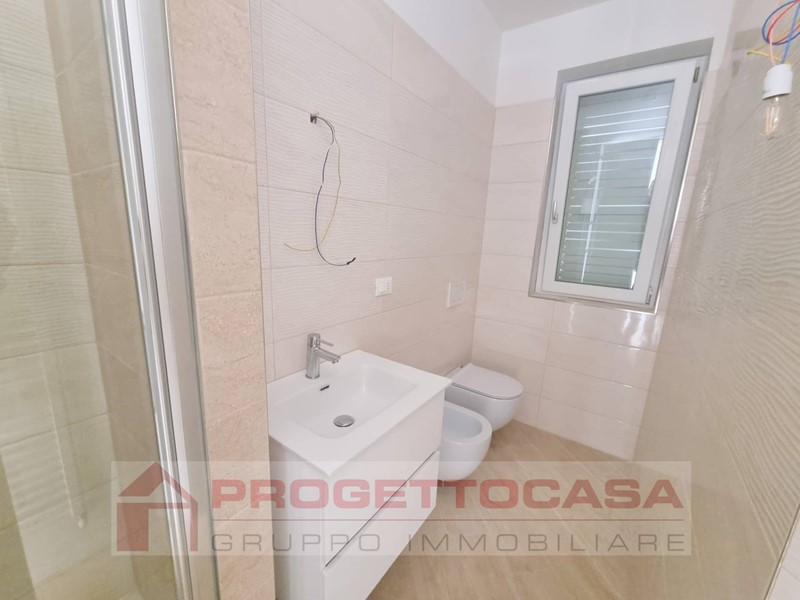 Appartamento di nuova costruzione, posto al piano primo di circa 80,00 mq composto da: ingresso su giorno con angolo cottura, n. 3 camere da letto, bagno principale con box doccia e bagno secondario con box doccia (entrambi finestrati), ampi terrazzi abitabili di complessivi 35 mq circa con esposizione Sud-Est-Nord. Completa la proprietà un comodo posto auto al piano terra.