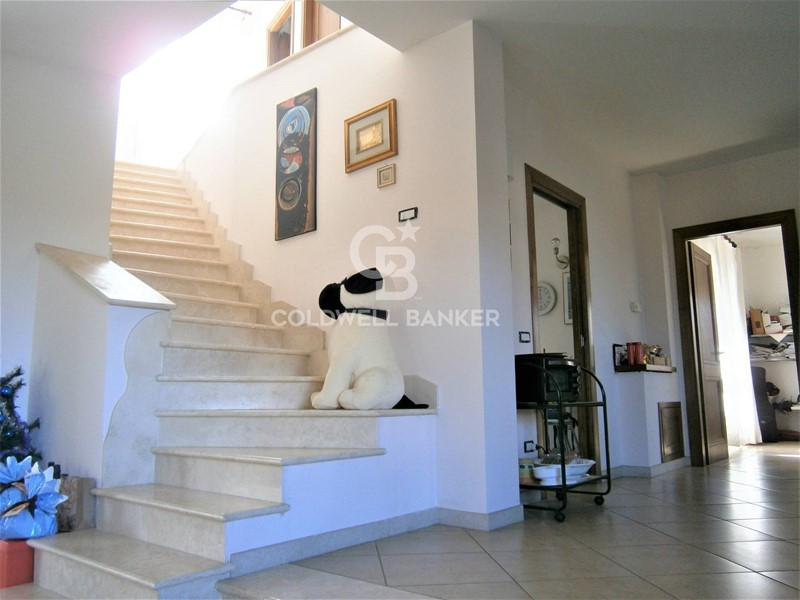 tramite una luminosa scalinata si accede al piano superiore torretta suddiviso in camera matrimoniale, cameretta, un bagno ed un terrazzo.